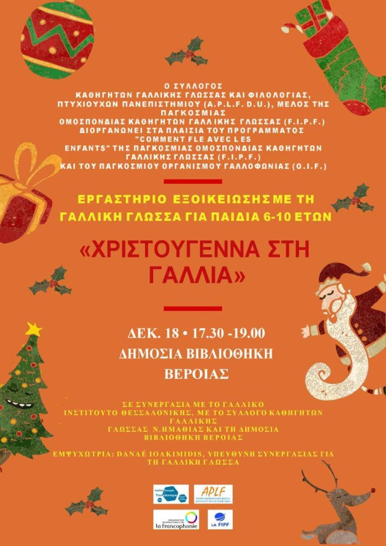 ένα δημιουργικό εργαστήριο εξοικείωσης με τη Γαλλική γλώσσα για μικρούς μαθητές με τίτλο «Τα Χριστούγεννα στη Γαλλία».