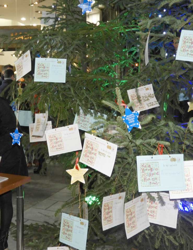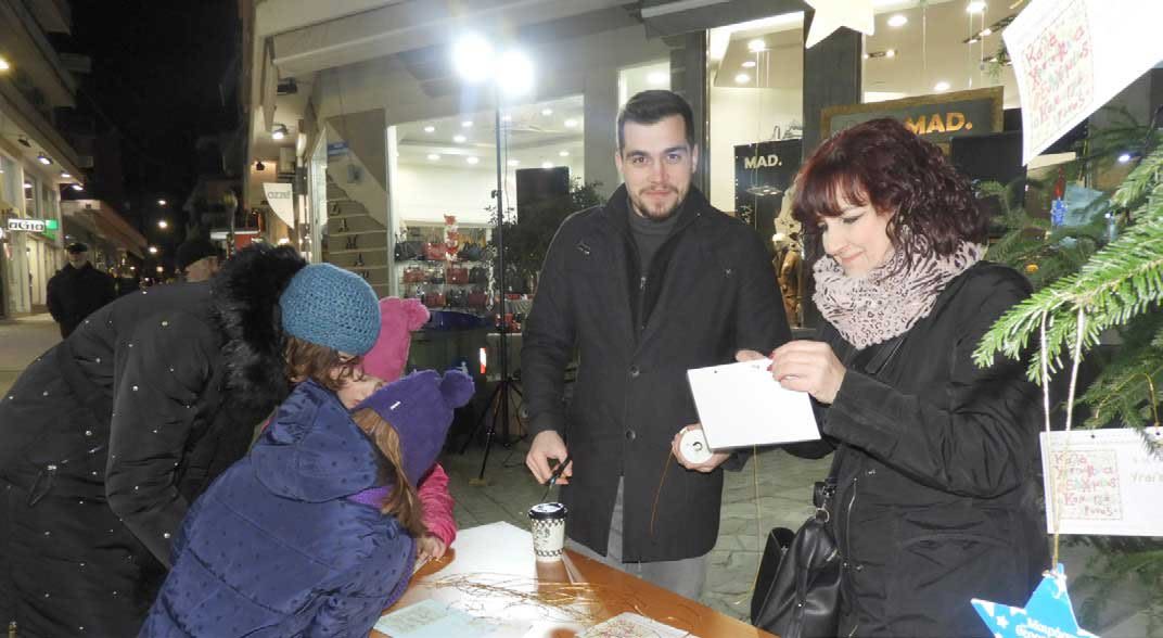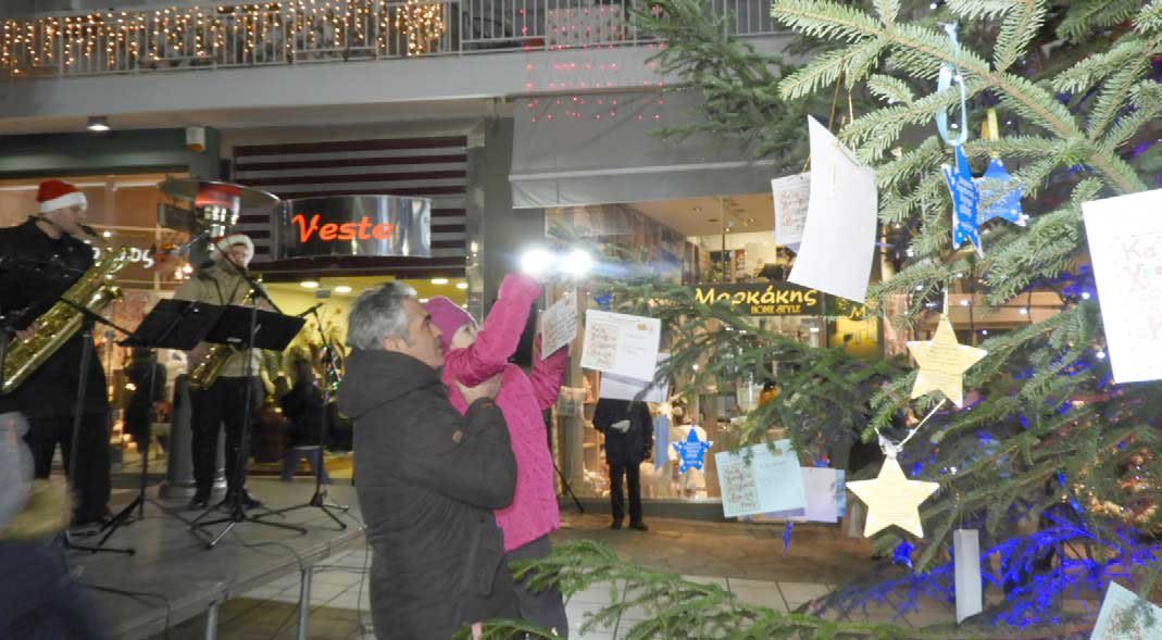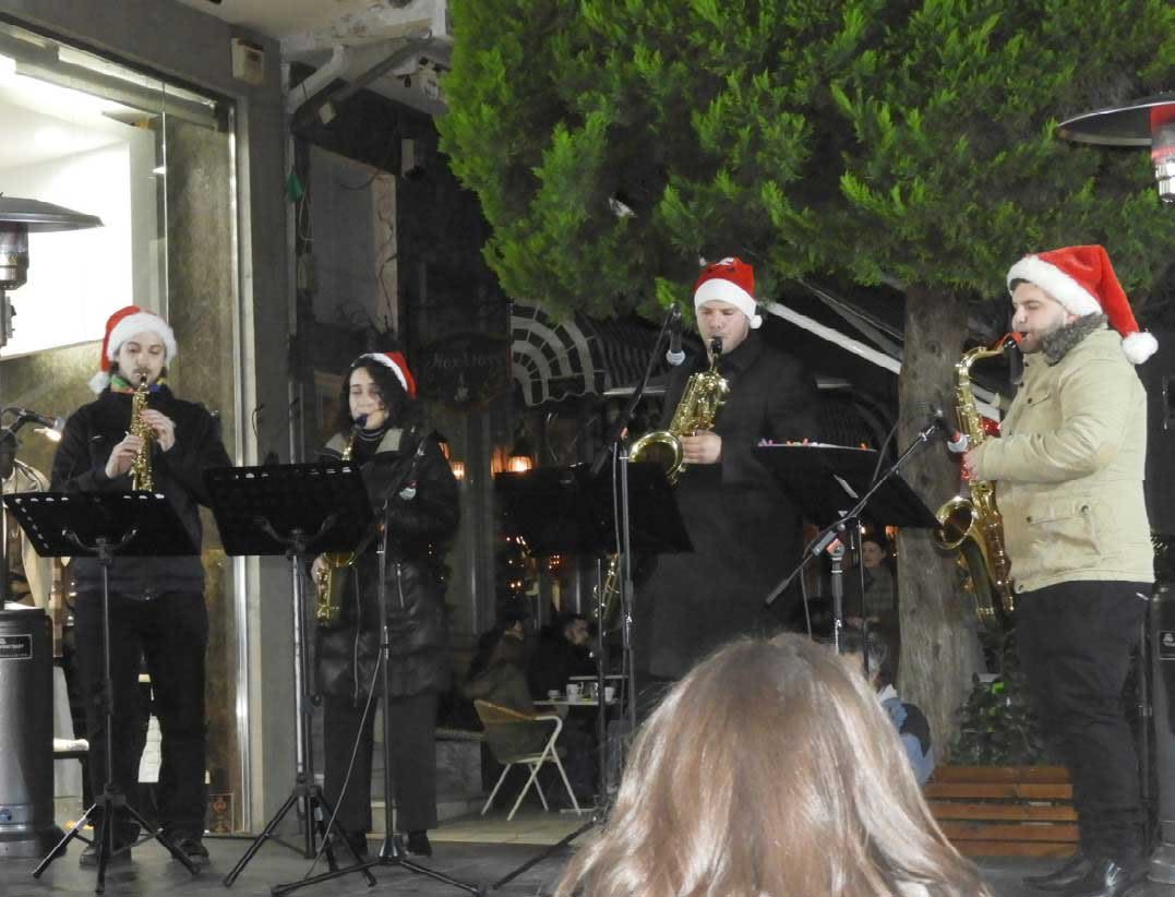 Μουσικό απόγευμα με τζαζ από το κουαρτέτο σαξοφώνων ThesSAXloniki, χθες στον πεζόδρομο της Αγοράς στη Βέροια, (Ιπποκράτους – Προφήτου Ηλία ) και ευχές από μικρούς και μεγάλους, γραμμένες σε κάρτες που κρεμάστηκαν στο δέντρο των ευχών.