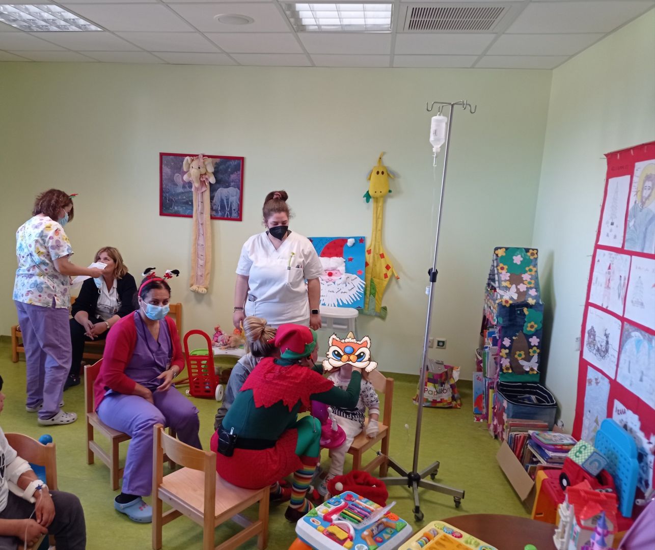 Με πρωτοβουλία του Σωματείου Εργαζομένων πλημμύρισε η Παιδιατρική του Νοσοκομείου Βέροιας με χαρμόσυνες Χριστουγεννιάτικες μελωδίες. Κατα την επίσκεψη του στην κλινική, το ξωτικό του Αϊ Βασίλη μοίρασε δώρα, ζωγράφισε τα προσωπάκια των παιδιών, έκανε ένα σωρό σκανδαλιές και σκόρπισε την χαρά στους λιλιπούτειους ασθενείς, τους γονείς, τους συνοδούς αλλά και το προσωπικό. Όλοι μαζί συμμετείχαν τραγουδώντας χορεύοντας και παίζοντας με τους μικρούς ασθενείς των οποίων η χαρά ήταν απερίγραπτη και αποτυπώνονταν στα χαμογελαστά αθώα προσωπάκια τους. Ήταν μια νότα διασκέδασης και ανακούφισης για τα παιδάκια αυτά και τους γονείς τους που αναγκάστηκαν τούτες τις άγιες ημέρες να τις περάσουν μέσα στο νοσοκομείο.