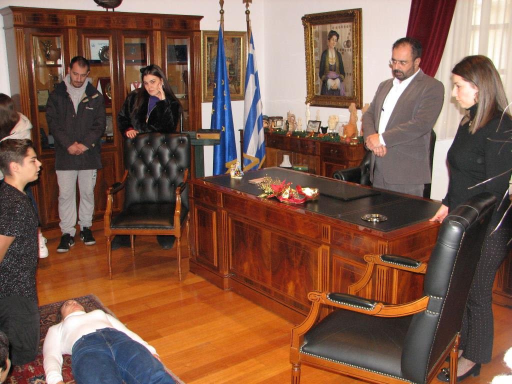 ΕΠΑΛ Βέροιας που πιστοποιήθηκαν στην Βασική Υποστήριξη ζωής (BLS) και στη χρήση του Αυτόματου Εξωτερικού Απινιδωτή (ΑΕD) από τον ανθρωπιστικό οργανισμό “Kids save lives”, επισκέφτηκαν τo Δημαρχείο ανταποκρινόμενοι