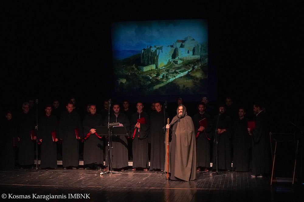 Την παράσταση πλαισίωσε πολυμελής Βυζαντινός χορός του Ωδείου της Ιεράς Μητροπόλεως υπό την διεύθυνση του κ. Ιορδάνη Ζερδαλή ενώ στα αναλόγια ερμήνευσαν τους βασικούς ρόλους η κ. Συρμούλα Τζήμα-Τόπη, ο κ. Μιχάλης Λιάγγος, ο Μοναχός Γεράσιμος Μπεκές και ο Αρχιδιάκονος Παντελεήμων Παπαεμμανουήλ.