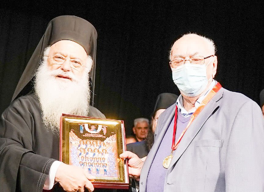 Με το χρυσό μετάλλιο της ‘Παντάνασσας’ βράβευσε τον Ιστορικό και Άρχοντα του Οικουμενικού Θρόνου, Μανώλη Βαλσαμίδη, καθώς και τον εκπαιδευτικό και αγιογράφο, Νίκο Χατζηιωάννου, την περασμένη Κυριακή η Μητρόπολη, για τη σημαντική συμβολή τους στην παρουσίαση και προβολή των αγίων Νεομαρτύρων της πόλης.