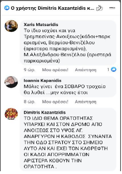 Καταιγισμό τηλεφωνημάτων και μηνυμάτων από αναγνώστες προκάλεσε το λαϊκό μας με τίτλο «Ζητείται λύση ορατότητας» που αναφερόταν στο πρόβλημα ορατότητας που αντιμετωπίζουν οι οδηγοί που κατεβαίνουν την οδό Παστέρ για να βγουν στην οδό Ανοίξεως, δίπλα από το Βλαχογιάννειο Μουσείο. Με σχόλια τους αναγνώστες επισημαίνουν ότι αντίστοιχο πρόβλημα υφίσταται στην Τρεμπεσίνας με Ανοίξεως(κάδοι και παρκαρισμένα αυτοκίνητα), Βερμίου με Βενιζέλου(αριστερά παρκαρισμένα), Μ. Αλεξάνδρου με Βενιζέλου(αριστερά παρκαρισμένα), όπως και το δρομάκι που κατεβαίνει από τους Αγ. Αναργύρους για την Στρατού, παρά το γεγονός ότι υπάρχει καθρέφτης, οι κάδοι αριστερά εμποδίζουν την ορατότητα και έχουν προκληθεί στο σημείο πολλά ατυχήματα. Χωρίς να έχουμε ανακαλύψει την Αμερική, οι απλές αυτές διαπιστώσεις που τις έχει κάνει όποιος κυκλοφορεί με το αυτοκίνητό του στο κέντρο της Βέροιας, θα πρέπει κάποια στιγμή με εξίσου απλές παρεμβάσεις να επιλυθούν.