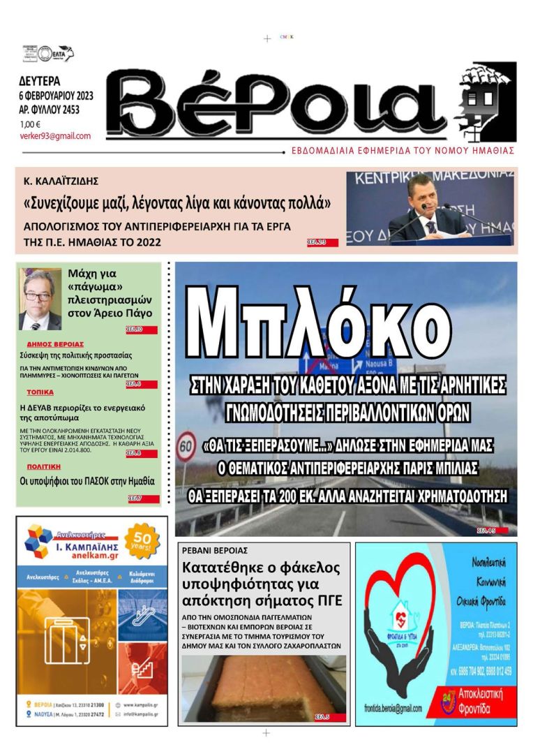 Κυκλοφορούν αύριο οι εφημερίδες ΒΕΡΟΙΑ - ΚΕΡΚΙΔΑ (6/2/2023)