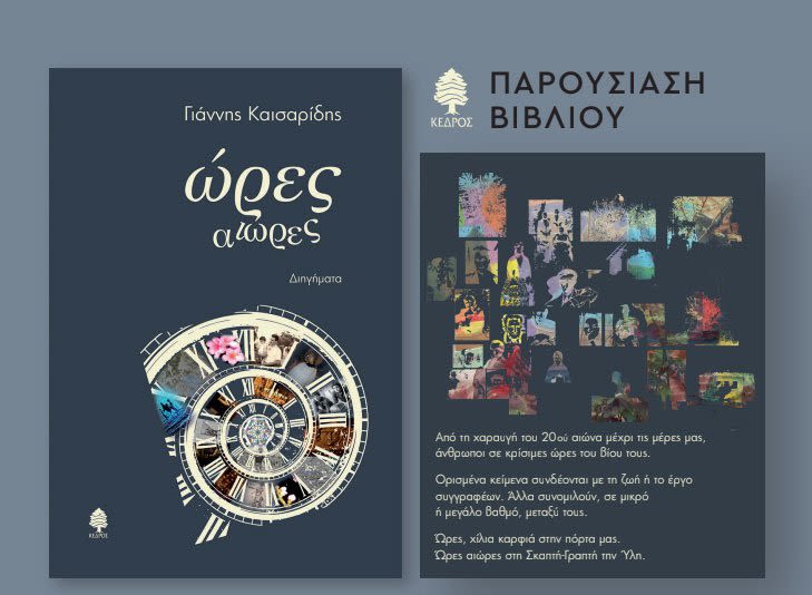 Οι Εκδόσεις ΚΕΔΡΟΣ σας προσκαλούν, τη ΔΕΥΤΕΡΑ 12 ΙΟΥΝΙΟΥ, στις 19:00, στη Δημόσια Κεντρική Βιβλιοθήκη Βέροιας (Έλλης 8) στην παρουσίαση του βιβλίου του ΓΙΑΝΝΗ ΚΑΙΣΑΡΙΔΗ «ώρες αιώρες».