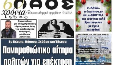 Η εφημερίδα «ΛΑΟΣ» του Ν. Ημαθίας, κυκλοφορεί πέντε ημέρες την εβδομάδα, αφορά στην καθημερινότητα του πολίτη, σε κοινωνικά, αγροτικά, οικονομικά, πολιτιστικά, αθλητικά και άλλα θέματα με πλούσια αρθρογραφία.