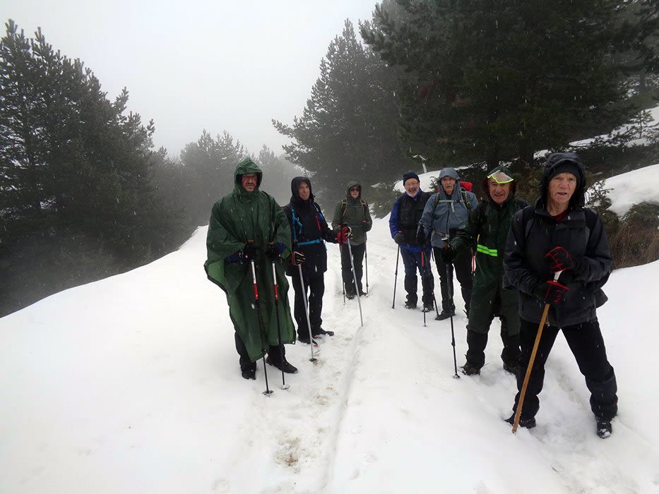 μόνοι εμείς 8 ορειβάτες από την Βέροια, ντυμένοι με ορειβατικά χρώματα. Το