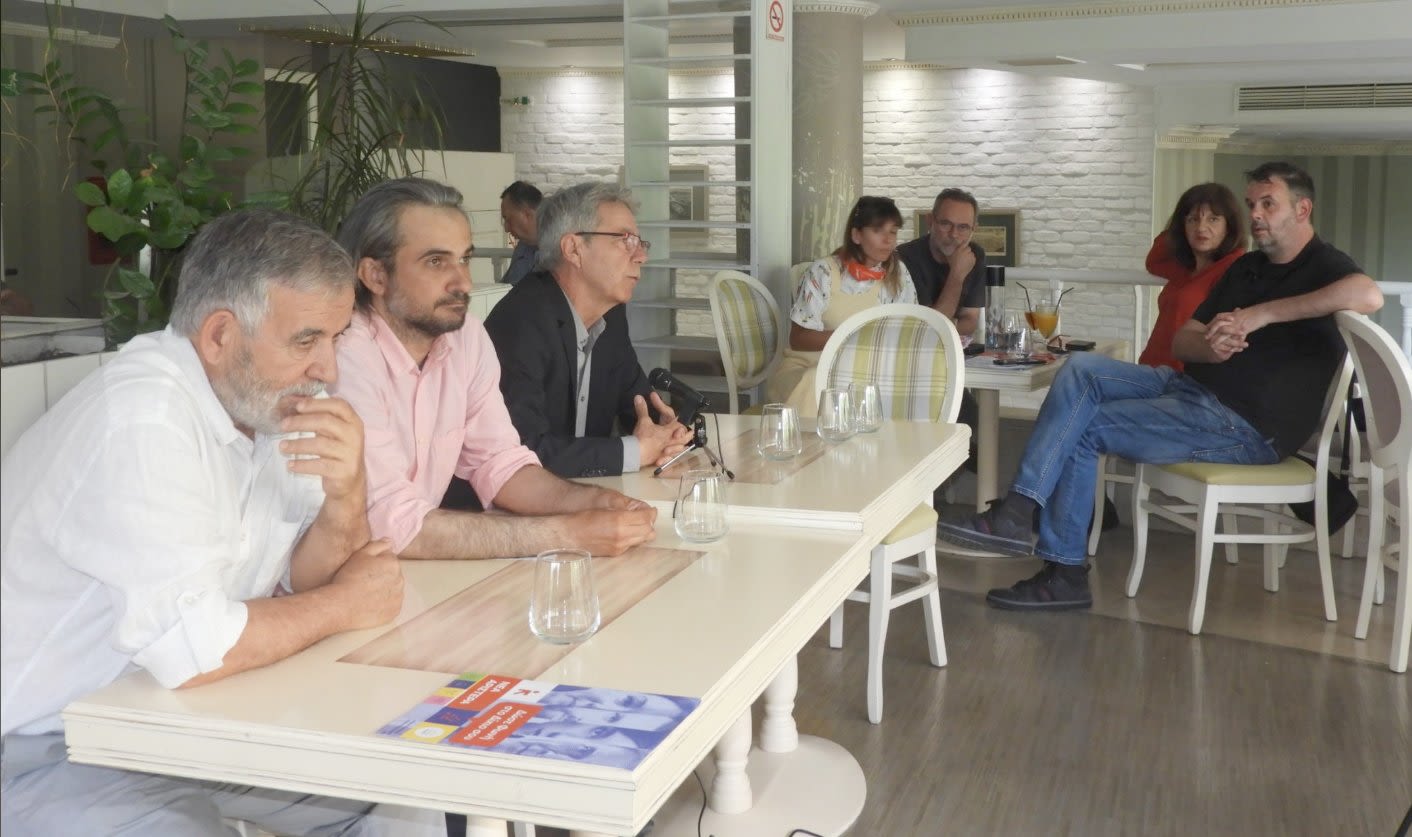 Στο πλαίσιο της περιοδείας του έδωσε το μεσημέρι συνέντευξη στα τοπικά ΜΜΕ που συντόνιζε ο Γρηγόρης Τσιολάκης, παρουσία του Δημήτρη Χαμπίδη στο πάνελ και μελών του κόμματος.