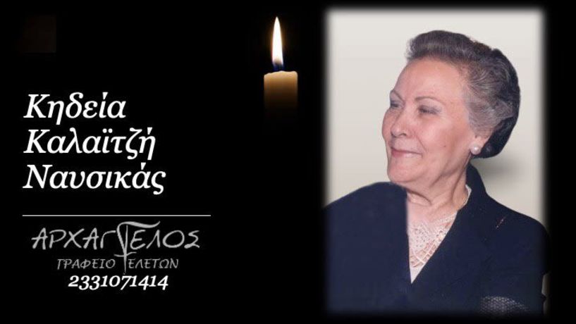Έφυγε από τη ζωή και κηδεύεται αύριο Κυριακή 8 Σεπτεμβρίου 2024 στις 12.00 μ.μ. από τον Ιερό Ναό Αγίου Αθανασίου (Κοιμητήρια) Βέροιας, η Ναυσικά Καλαϊτζή σε ηλικία 89 ετών.