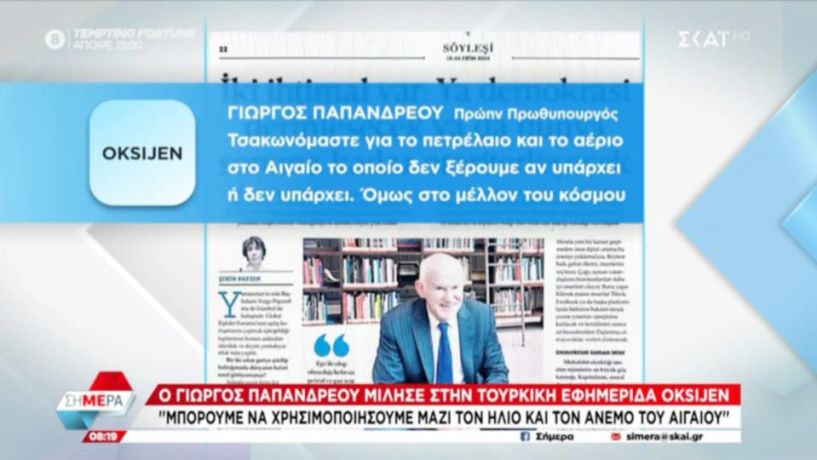 Συνέντευξη στην τουρκική εφημερίδα Oksijen παραχώρησε ο Γιώργος Παπανδρέου με τον πρώην πρωθυπουργό να δηλώνει ότι Ελλάδα και Τουρκία «μπορούμε να χρησιμοποιήσουμε μαζί τον ήλιο και τον άνεμο του Αιγαίου».