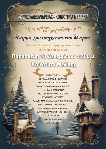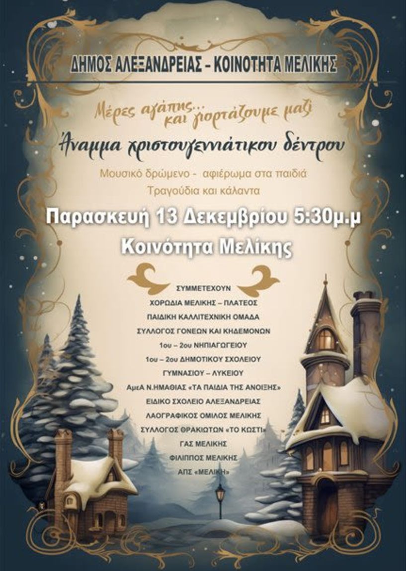 κάλαντα. Συμμετέχουν χορωδία Μελίκης – Πλατέος παιδική καλλιτεχνική ομάδα, Σύλλογος