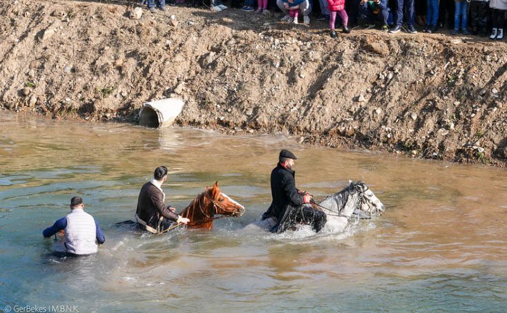 Ακολούθησε, στον αύλειο χώρο του Προσκυνηματικού Ναού, η Ακολουθία του Μεγάλου Αγιασμού και στη συνέχεια λιτανευτική πομπή προς την περιοχή κάτω από τα κοιμητήρια της Βεροίας, στον ποταμό Τριπόταμο, όπου ο Σεβασμιώτατος Μητροπολίτης κ. Παντελεήμων τέλεσε τον καθαγιασμό των υδάτων και τη ρίψη του Τιμίου Σταυρού, παρουσία τοπικών πολιτικών και στρατιωτικών αρχών και πλήθους Βεροιέων.