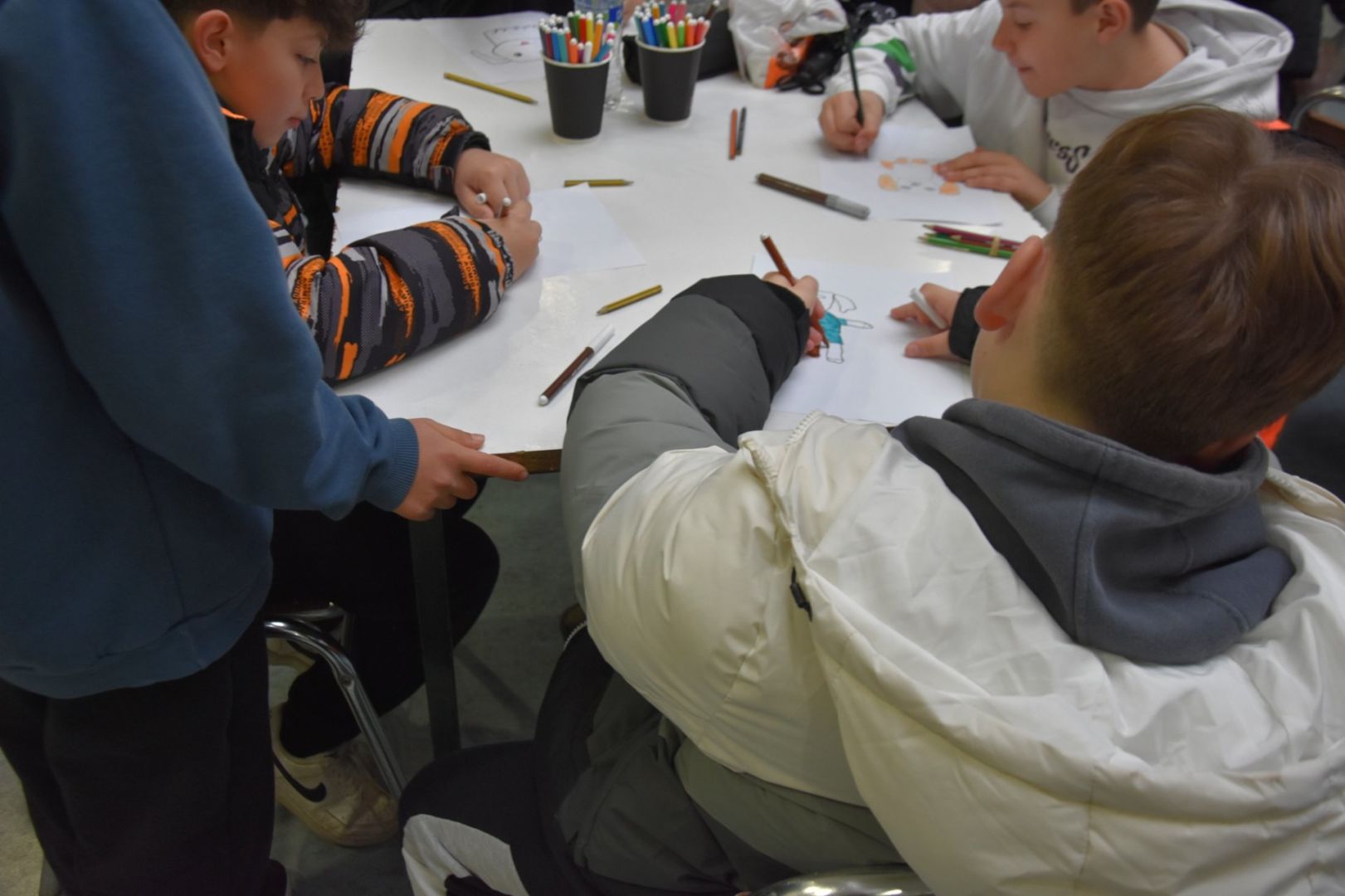 Στη συνέχεια οι μαθητές ζωγράφισαν με θέμα τα αδέσποτα ζώα, καθώς στην εκδήλωση παρόντες ήταν η Μίνι, η Βάνι και ο… Μήτσος, δυο σκυλίτσες και ένας γατούλης, δεσποζόμενα ζώα, τα οποία όμως ήταν αδέσποτα πριν βρουν την θαλπωρή και την φροντίδα στους κηδεμόνες τους.