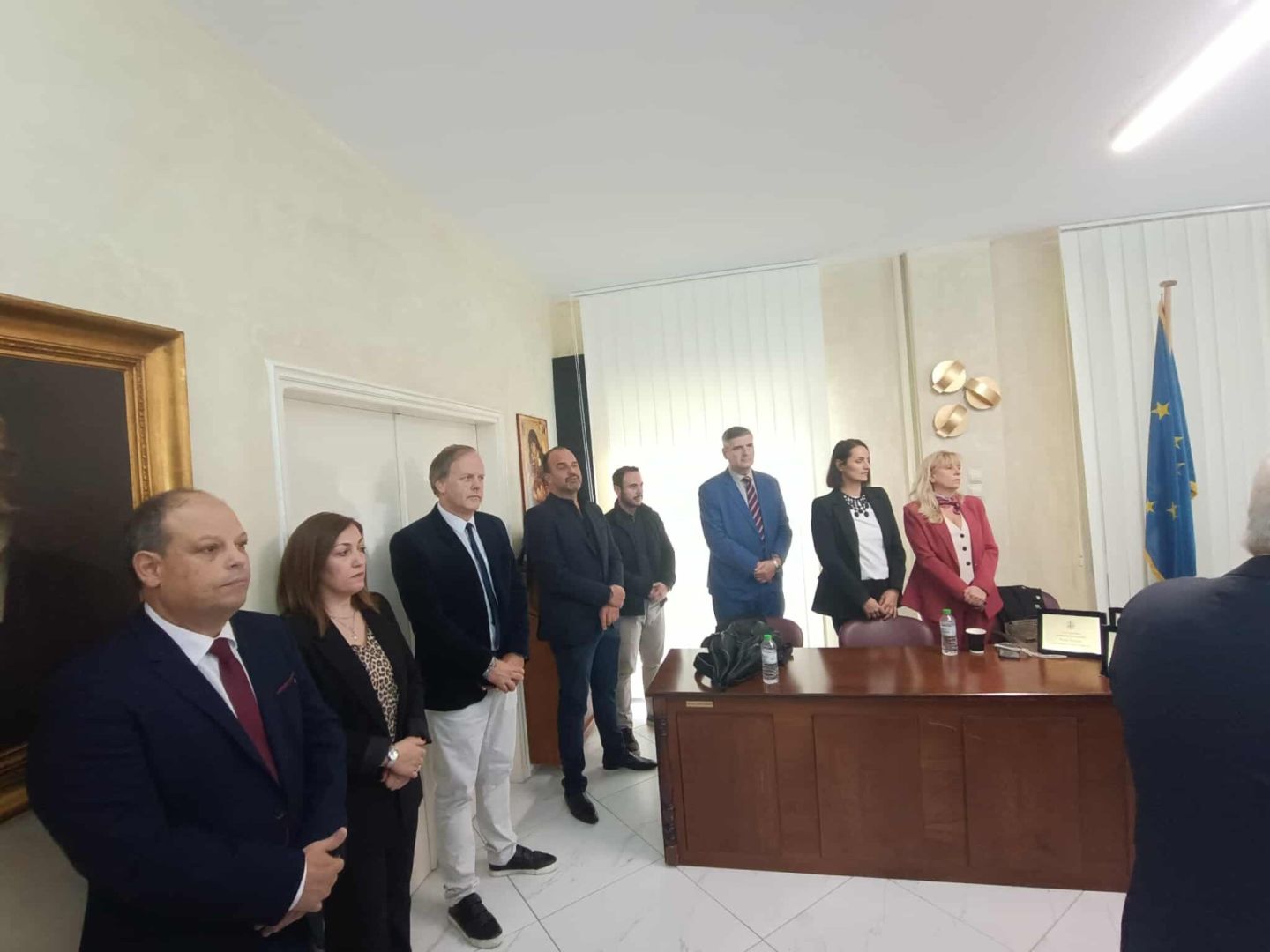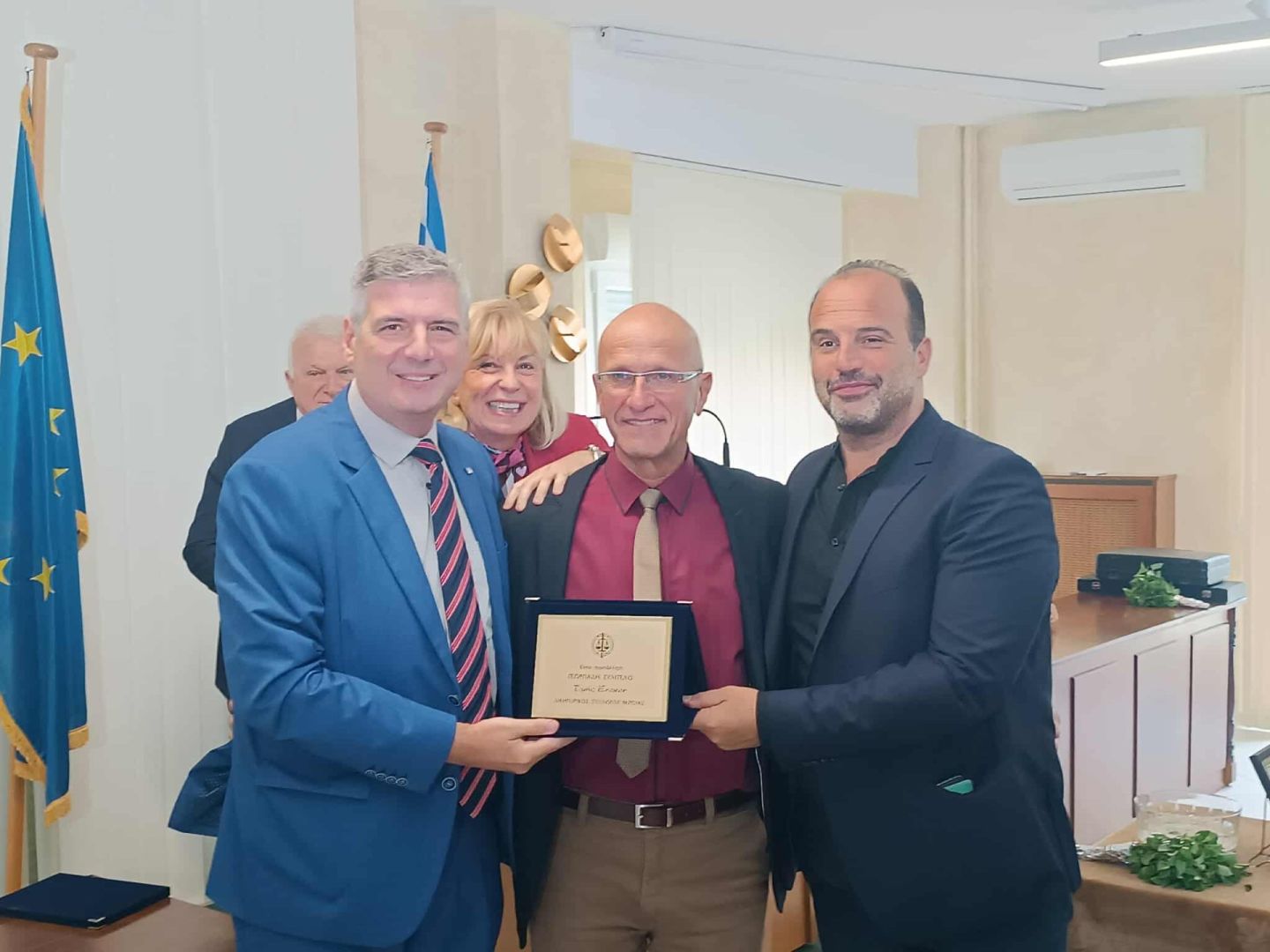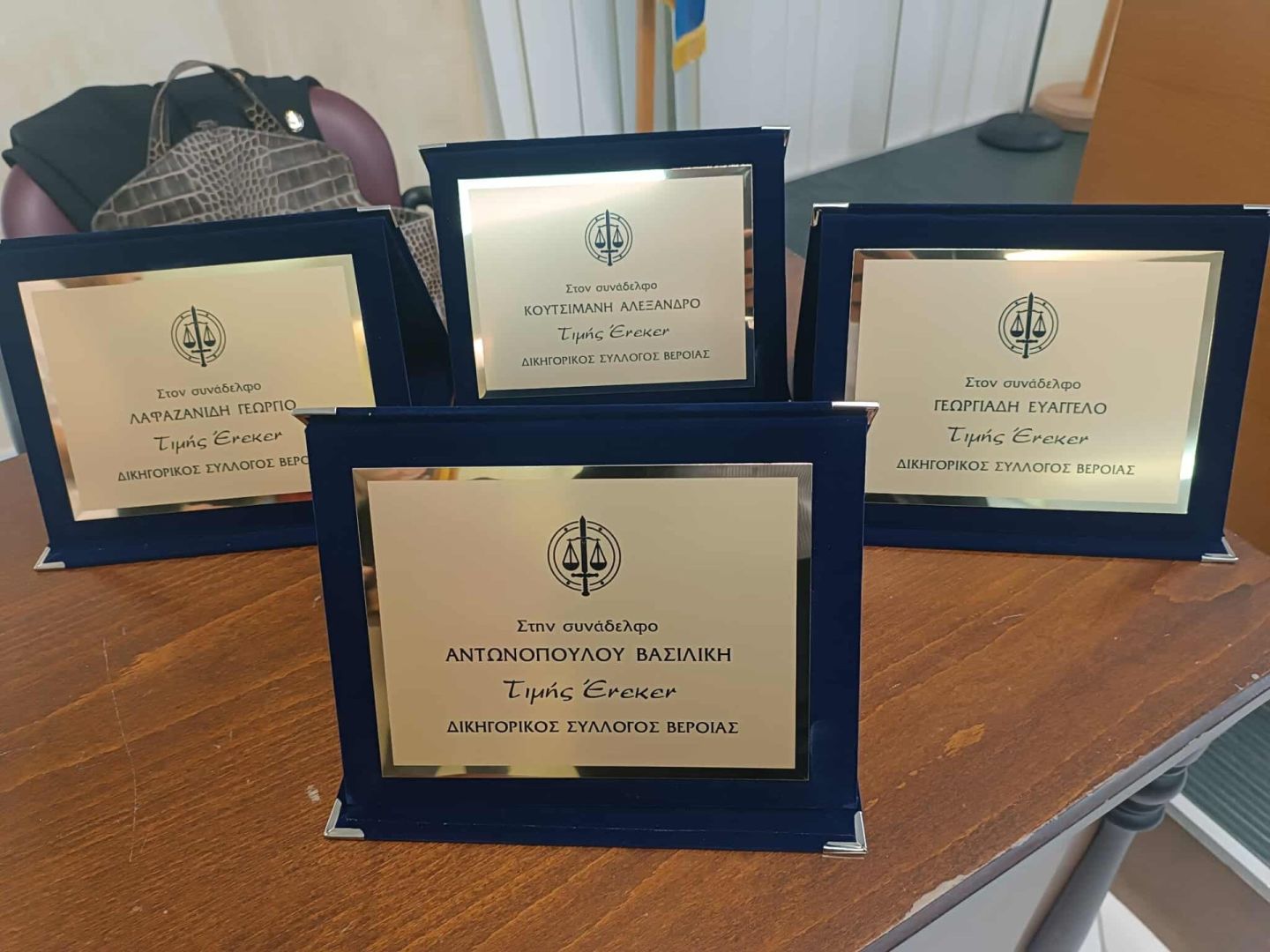 Λίγο μετά τις 11 στην αίθουσα του δικηγορικού συλλόγου «Φιλοκτήμων Παπαδόπουλος» στην πλατεία Ωρολογίου, πραγματοποιήθηκε η έναρξη της εκδήλωσης με αγιασμό από τον Σεβασμιότατο για την έναρξη του νέου δικαστικού έτους. Ακολούθησε μια σύντομη ομιλία από τον πρόεδρο του Δικηγορικού Συλλόγου Βέροιας Στέργιο Σουροβίκη για την προσωπικότητα του Αγίου Διονυσίου του Αρεοπαγίτη. Στην καθιερωμένη απονομή των τιμητικών πλακετών στους αποχωρήσαντες δικηγόρους λόγω συνταξιοδότησης(Κουτσιμανής Αλέξανδρος, Αντωνοπούλου Βασιλική, Λαφαζανίδης Γεώργιος και Γεωργιάδης Ευάγγελος) που ακολούθησε, υπήρξε ιδιαίτερη φόρτιση, όταν έλαβε τον λόγο στο βήμα ο Βαγγέλης Γεωργιάδης. Ο συνταξιούχος πλέον δικηγόρος ανέφερε ότι μετά από 36 χρόνια μάχιμης δικηγορίας αποχωρεί γεμάτος και έτοιμος να χαρεί και να απολαύσει την ζωή χωρίς να έχει πλέον το καθημερινό άγχος της δικηγορίας. Ευχαρίστησε και συγχρόνως ζήτησε συγνώμη από τους συναδέλφους του γιατί αναπόφευκτα λόγω των αντιδικιών τόσα χρόνια ίσως να στεναχώρησε κάποιους. Ο κ. Γεωργιάδης δεν παρέλειψε να αναφέρει δυο λόγια για την ομάδα μπάσκετ του δικηγορικού συλλόγου Βέροιας, με την οποία αγωνίζεται από την πρώτη ημέρα που συστάθηκε εδώ και τόσα χρόνια και παρά τις επανειλημμένες φορές που αποφάσισε να αποσυρθεί, παραμένει ακόμη μέλος της και είναι περήφανος για τον σεβασμό που έχουν κερδίσει για το ήθος και την αγωνιστικότητα ανάμεσα στους δικηγορικούς συλλόγους της Ελλάδας και της Κύπρου. Μετά τους «απόμαχους» της δικηγορίας, τα φώτα της εκδήλωσης στράφηκαν στους νεοδιορισθέντες Ζυγουλιάνου Ξένη, Σεραφείμ Νικολέττα και Παραστατίδου Ευαγγελία, οι οποίοι εκτός από τις ευχές των συναδέλφων τους έλαβαν και μια δωροεπιταγή.
