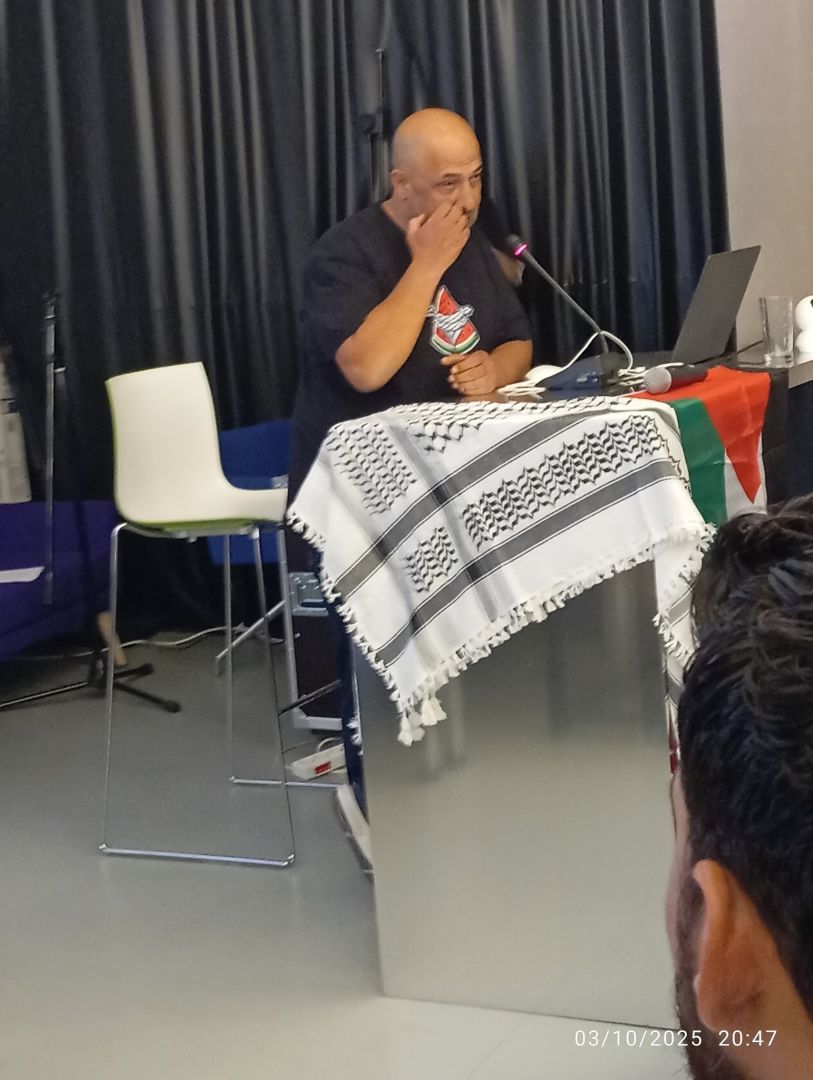 «Συνεχίζοντας τις δράσεις αλληλεγγύης στο λαό της Παλαιστίνης, η ΕΛΜΕ πραγματοποίησε εκδήλωση-συζήτηση για τις εξελίξεις το απόγευμα της Παρασκευής 3/10 στην κατάμεστη αίθουσα της Δημόσιας Βιβλιοθήκης Βέροιας.