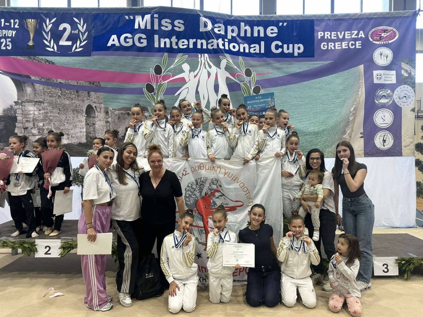 Πολλά συγχαρητήρια στις 2 μικρές ομάδες Αισθητικής Ομαδικής Γυμναστικής ηλικίας 10-12 χρονών του συλλόγου μας που πήραν μέρος  στο Πανελλήνιο κύπελλο και στο διεθνές κύπελλο Miss Daphne που διεξήχθη στην όμορφη πόλη της Πρέβεζας στις 10-12 Οκτωβρίου 2025. Η πρώτη ομάδα Free Soul mini στο short πρόγραμμα κέρδισε 2 χρυσά μετάλλια και αποτελείται  από τις αθλήτριες: