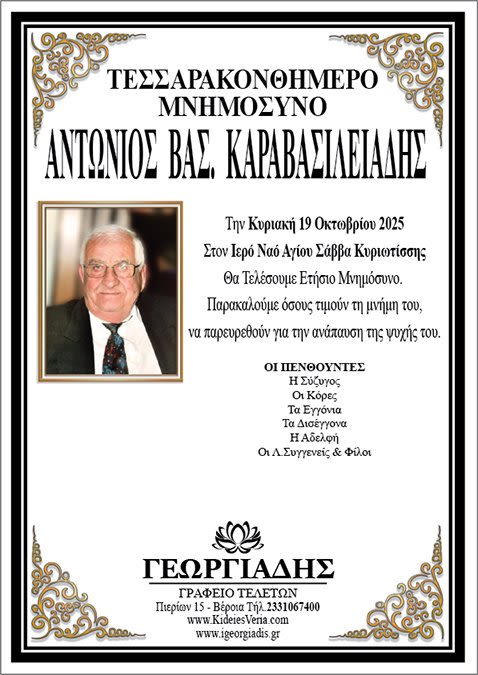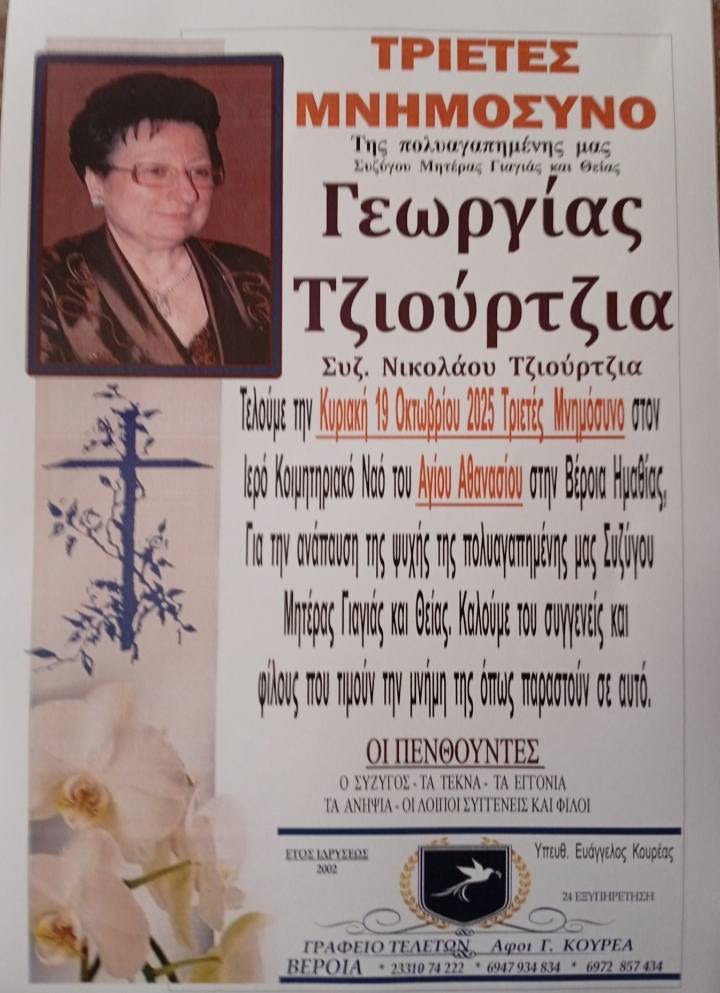 Έφυγε από τη ζωή και κηδεύεται την Κυριακή 19 Οκτωβρίου...