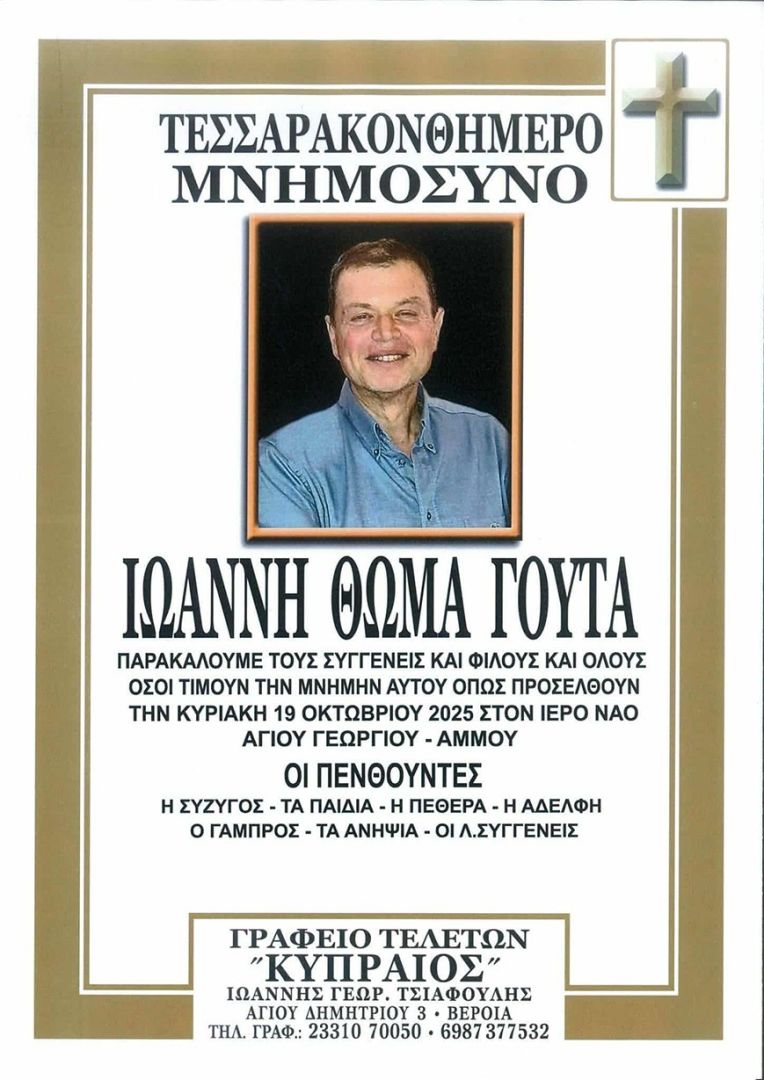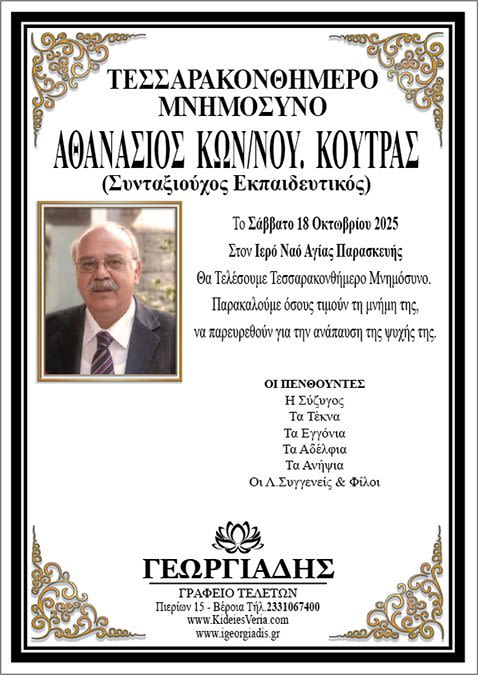 Η είδηση της αιφνίδιας απώλειας του 66χρονου ηλεκτρολόγου Γιώργου Κουτσιώνη, το πρωί της Τετάρτης (29/5/2024), σκόρπισε θλίψη στην κοινωνία της Βέροιας. Ο Γιώργος Κουτσιώνης υπήρξε άριστος επαγγελματίας και...