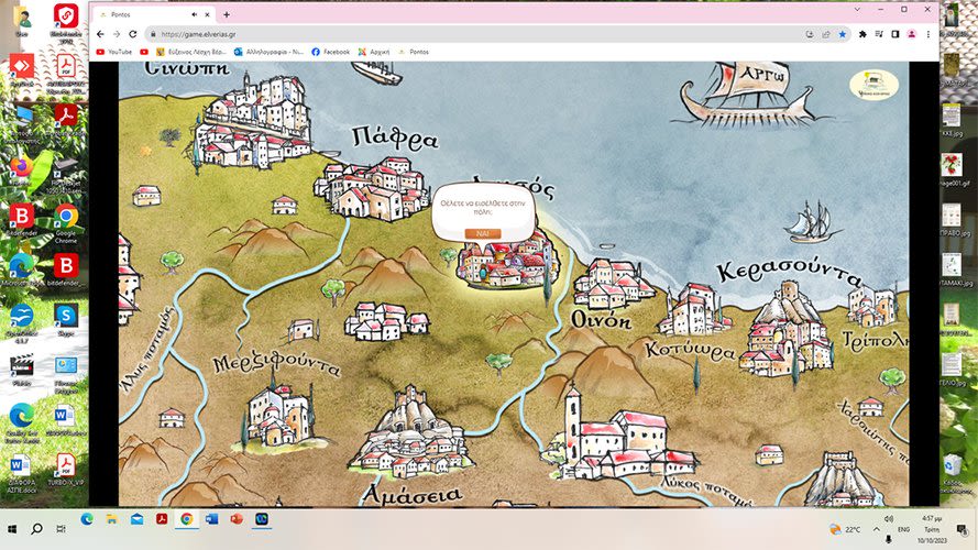 από τον ηλεκτρονικό του υπολογιστή, διάφορες πόλεις του Πόντου και καλείται να