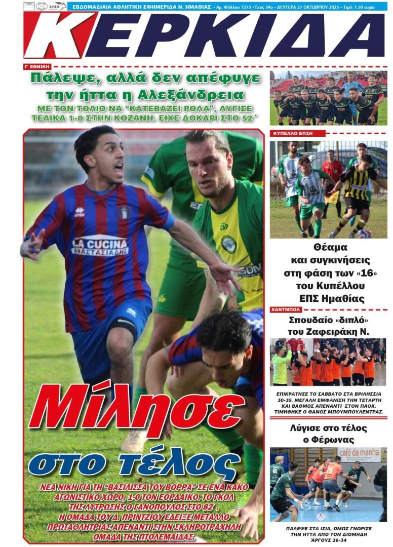 Διαβάστε αύριο στην "ΚΕΡΚΙΔΑ" που κυκλοφορεί (27/10/2025)