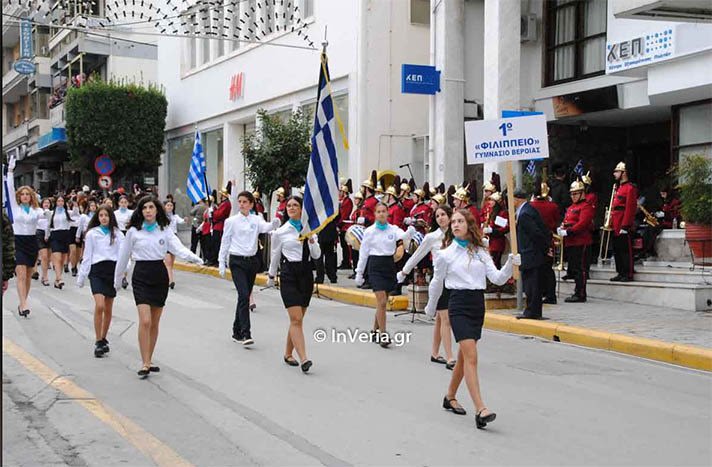 Ακολούθησε τρισάγιο στο ηρώο της Βέροιας στην πλατεία Ωρολογίου και αμέσως μετά η καθιερωμένη μαθητική και στρατιωτική παρέλαση επι της οδού Μητροπόλεως που γέμισε κόσμο με μικρές σημαίες στα χέρια.