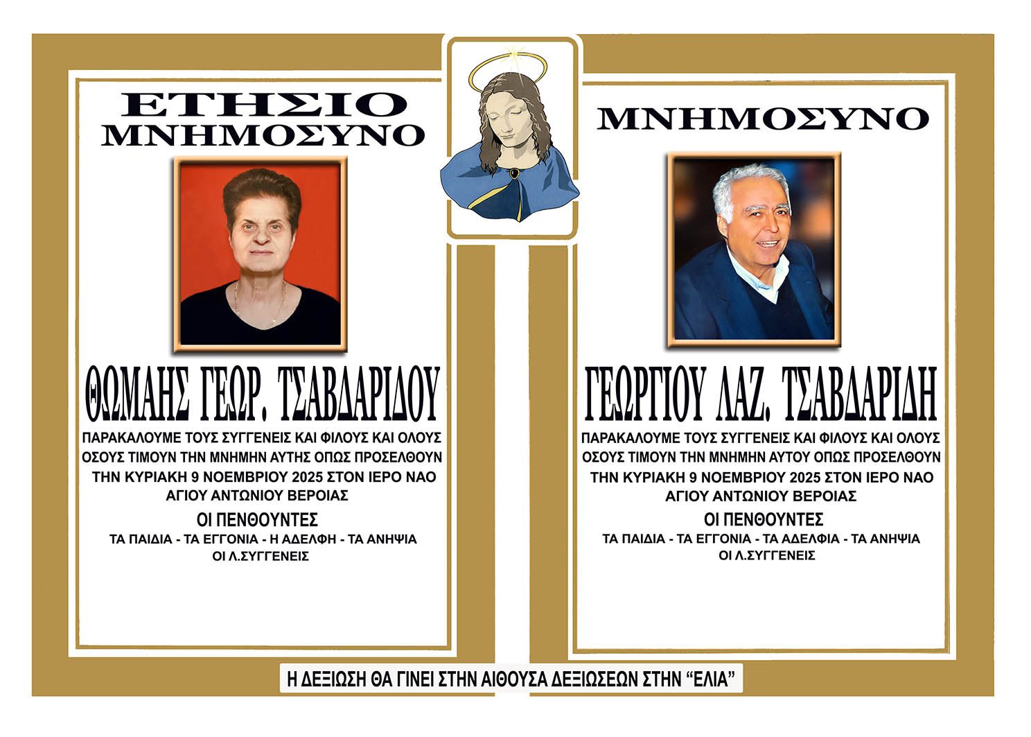 Την Κυριακή 9 Νοεμβρίου το μνημόσυνο της Θωμαής Τσαβδαρίδου και του Γεώργιου Τσαβδαρίδη