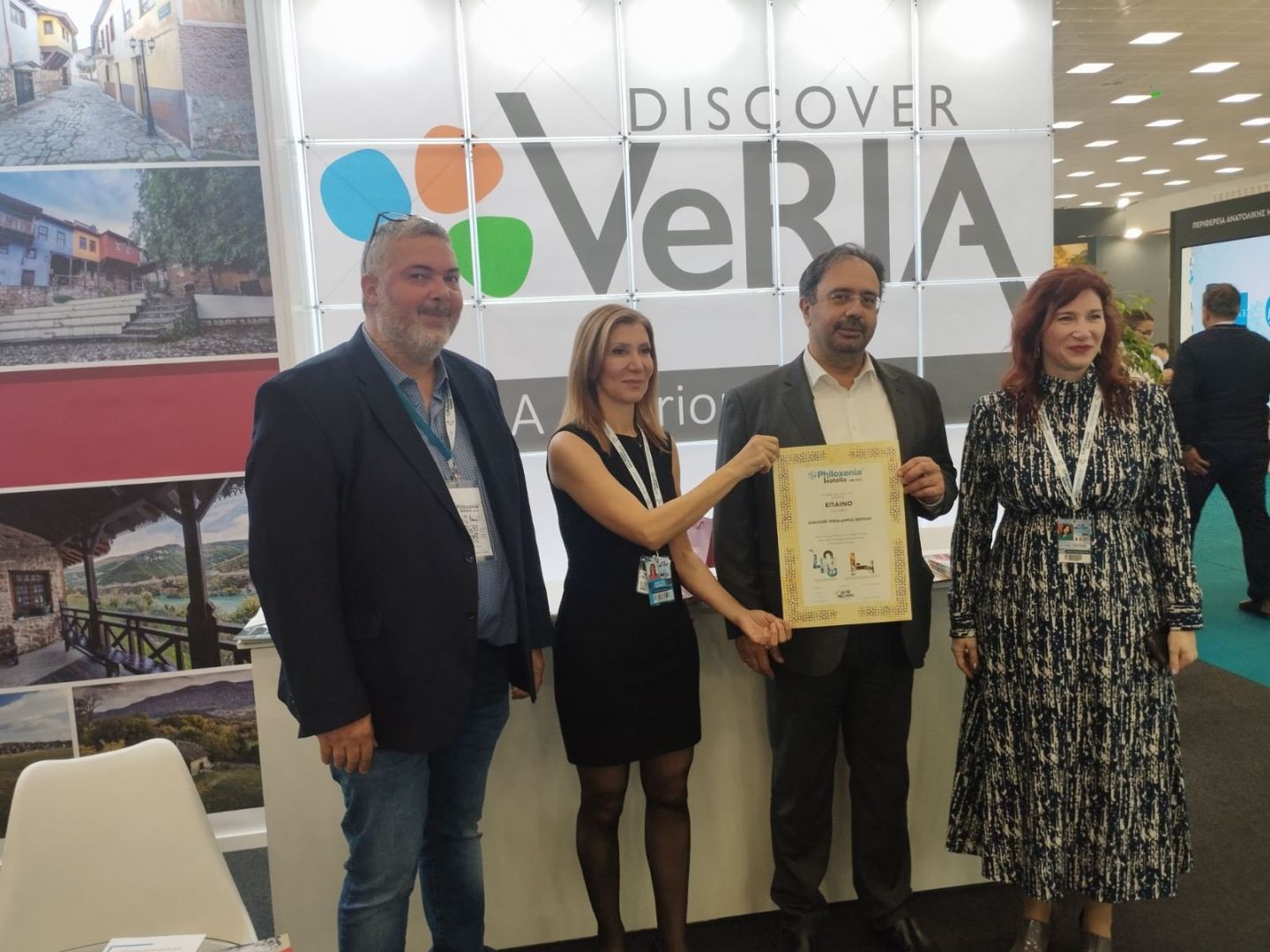 Τέλος, η ΔΕΘ, αναγνωρίζοντας ως ιδιαίτερα σημαντική τη συνεχή παρουσία του Δήμου Βέροιας στην έκθεση, απέδωσε έπαινο για τη συμμετοχή και συμβολή του στην επετειακή διοργάνωση των 40 ετών της Philoxenia.
