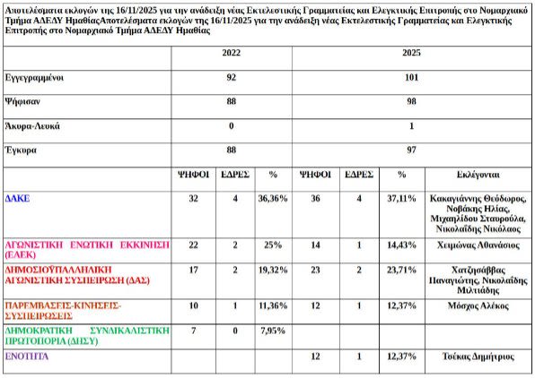 Διεξήχθησαν στις 16/11/2025 οι εκλογές στο Νομαρχιακό Τμήμα της ΑΔΕΔΥ Ν. Ημαθίας για την ανάδειξη της Νέας Εκτελεστικής Γραμματείας για την επόμενη τριετία.