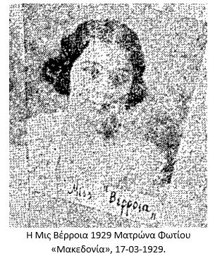 Κατόπιν ἡ ἐπιτροπὴ ἐξετάσασα μίαν ἑκάστην ἐκ τῶν διαγωνιζομένων ἀπεσύρθη εἰς σύσκεψιν καὶ τὴν 2½ πρωϊνὴν διὰ τοῦ προέδρου κ. Γρηγορίου ἀνεκοίνωσε τὴν ἀπόφασίν της δι᾿ ἧς “Μὶς Βέρροια 1929” ἀνεκηρύχθη ἡ δ)ὶς Ματρώνα Φωτίου, ἐπιλαχοῦσα δὲ ἡ δ)ὶς Γιαμᾶ.