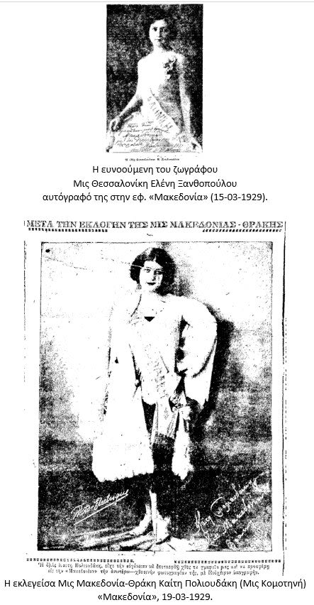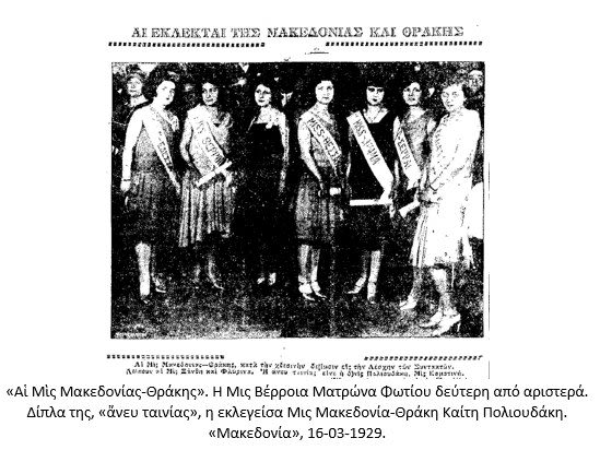 Η φωτογραφική «Ματιά» του εκλεκτού φίλου και θησαυροφύλακα της τοπικής φωτο-ιστορίας κυρίου Στέργιου Ζυγουλιάνου στα «Καλλιστεία Μακεδονίας-Θράκης 1929» και στη συμμετοχή (και -όπως θα φανεί στη συνέχεια- την διάκριση) σ’ αυτά της «Μις Βέρροια 1929» («Λαός», 15/16-11-2025), επισπεύδει, λόγω θεματικής συνάφειας, την ανάσυρση, από την «λίστα αναμονής», του παρόντος σημειώματος, το οποίο προσδοκούσε να εμφανισθεί την περίοδο της Αποκριάς, - επειδή αποκριάτικες μέρες (ή μάλλον: νύχτες) είχαν φιλοξενήσει τους διαγωνισμούς ομορφιάς του 1929. Διαγωνισμούς, που είχαν διεξαχθεί, για την ανάδειξη τοπικών «Μις», στις πόλεις της Μακεδονίας και της Θράκης, για να κορυφωθούν στην Θεσσαλονίκη, το Σάββατο της μεγάλης Αποκριάς, στις 16 Μαρτίου 1929.