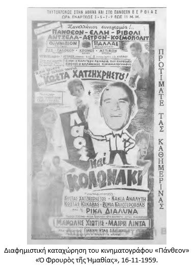 Μόλις ένα μήνα μετά την πανελλήνια πρεμιέρα της (19-10-1959), η ταινία αυτή προβλήθηκε και στη Βέροια, από 16 Νοεμβρίου έως 01 Δεκεμβρίου 1959, στον επί της οδού Μεγάλου Αλεξάνδρου (τότε) κινηματογράφο «Πάνθεον» [την διαδέχθηκε δε, από τις 02-12-1959, στην ίδια οθόνη (του «Πάνθεον»), η κωμωδία του 1955 (με τον Κώστα Χατζηχρήστο και την Γεωργία Βασιλειάδου) «Πιάσαμε την καλή», σκηνές της οποίας απαθανατίζουν[4] την Ταβέρνα του Τζίμη του Χοντρού και τους Βασίλη Τσιτσάνη και Μαρίκα Νίνου να τραγουδούν “Για να σε κάνω άνθρωπο”, “Ζαΐρα” και “Τα καβουράκια”].