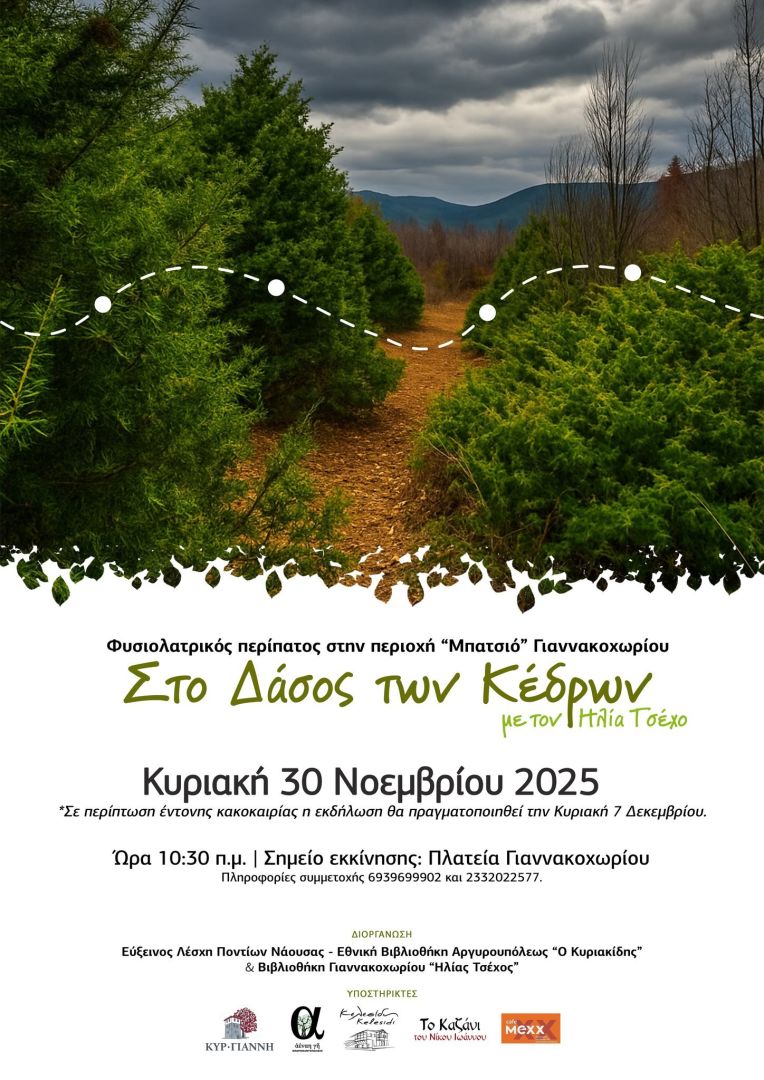 διαδρομή στο Δάσος των Κέδρων στο Γιαννακοχώρι, την Κυριακή 30 Νοεμβρίου. Η