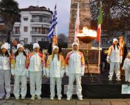 Η άφιξη της Ολυμπιακής Φλόγας στην Πλατεία Καρατάσου κορυφώθηκε με την τελετουργική αφή στον βωμό από τη Ναουσαία Πρωταθλήτρια Χιονοδρομίας – Olympian, Σοφία Ράλλη.