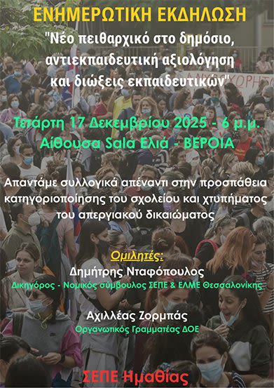 Ενημερωτική εκδήλωση διοργανώνει στη Βέροια, ο Σύλλογος Εκπαιδευτικών