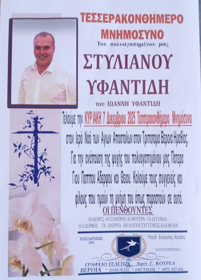Η είδηση της αιφνίδιας απώλειας του 66χρονου ηλεκτρολόγου Γιώργου Κουτσιώνη, το πρωί της Τετάρτης (29/5/2024), σκόρπισε θλίψη στην κοινωνία της Βέροιας. Ο Γιώργος Κουτσιώνης υπήρξε άριστος επαγγελματίας και...