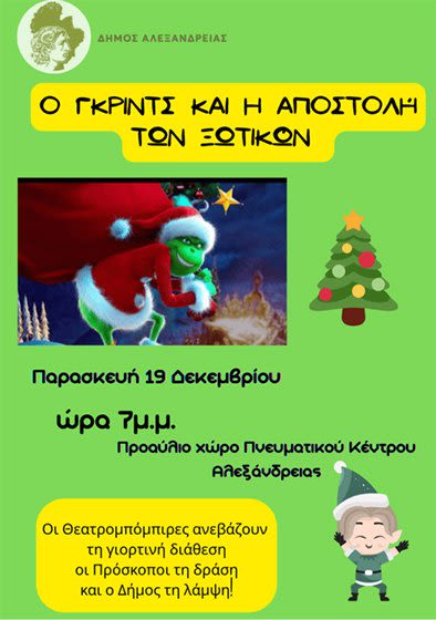 “Ο Γκριντς και η Αποστολή των Ξωτικών” – μια διαδραστική μουσικοκινητική περιπέτεια για παιδιά, αύριο Παρασκευή 19 Δεκεμβρίου στην Αλεξάνδρεια