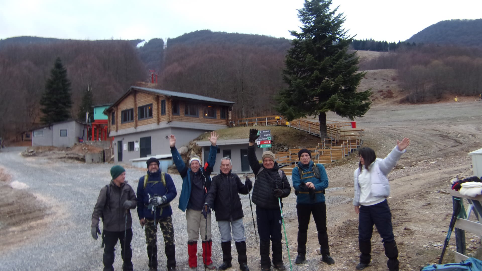 χιονοδρομικό μας υποδέχεται χωρίς καθόλου κίνηση μόνοι εμείς , προετοιμασία για πορεία και