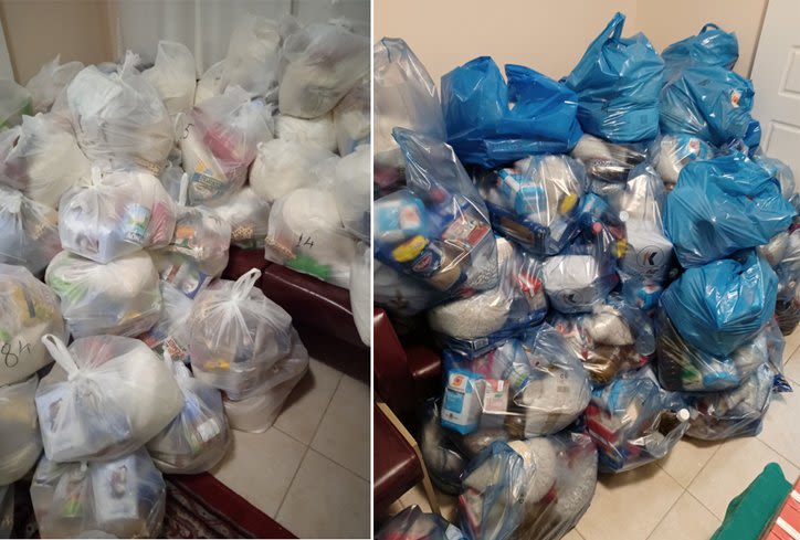 αλλά και νωπών προϊόντων, που τα συσκευάσαμε και το Σάββατο, μαζί με ένα μικρό