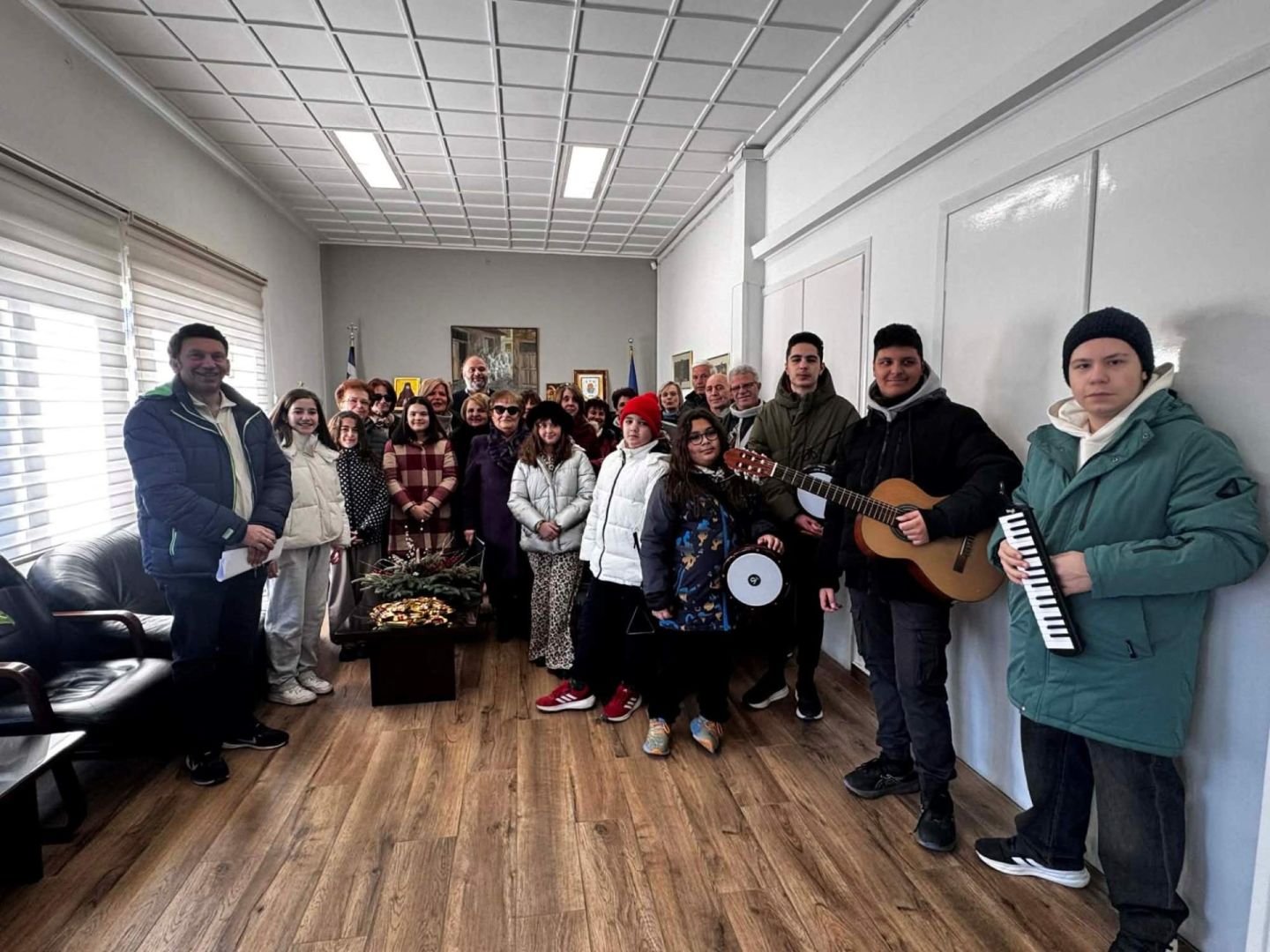 Η επίσκεψη πραγματοποιήθηκε σε ιδιαίτερα ευχάριστη ατμόσφαιρα, με τον Δήμαρχο να προσφέρει στους συμμετέχοντες γλυκίσματα, ανταλλάσσοντας ευχές και θερμά λόγια, ενώ οι μελωδίες των καλάντων γέμισαν τον χώρο με χαμόγελα και εορταστική διάθεση.