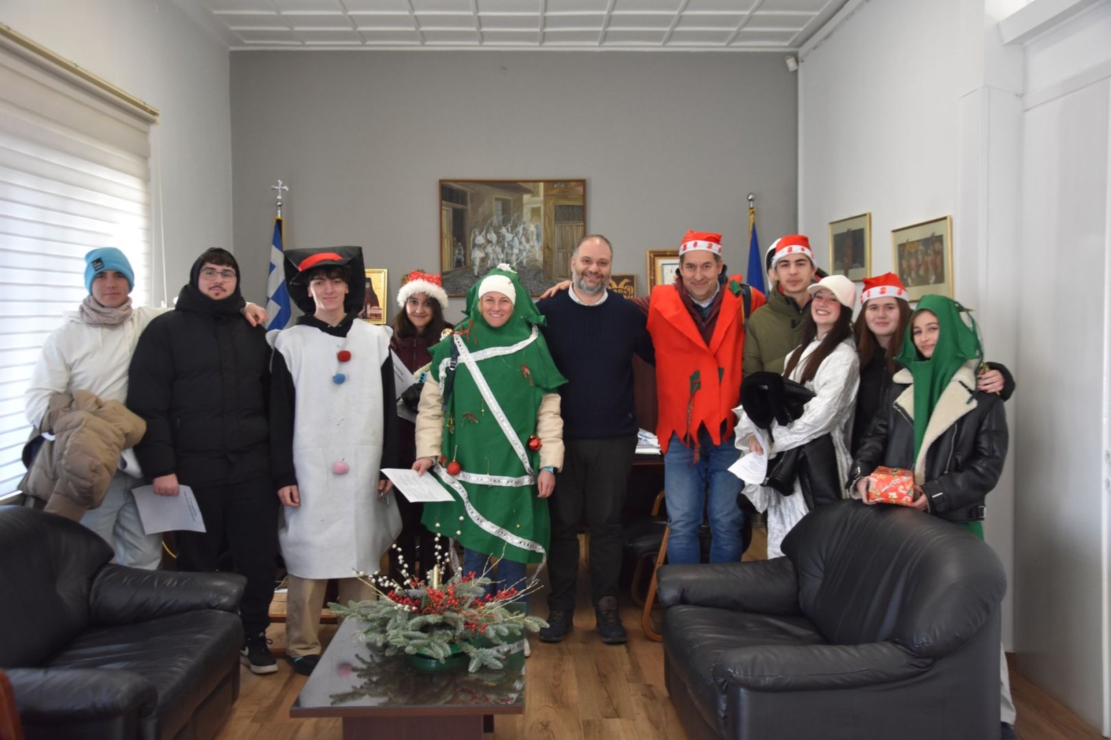 Τους μαθητές και τους εκπαιδευτικούς υποδέχθηκε ο Δήμαρχος Νάουσας, κ. Νίκος Κουτσογιάννης, ο οποίος τους ευχήθηκε καλή χρονιά με υγεία και επιτυχίες, ενώ τους προσέφερε γιορτινά γλυκίσματα, στο πλαίσιο της εορταστικής φιλοξενίας.