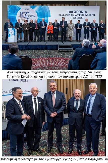 Οι επετειακή διοργάνωση για την συμπλήρωση των 100 χρόνων από την ίδρυση του Πανελλήνιου Ιατρικού Συλλόγου, πέραν του ιδιαίτερου συμβολικού και θεσμικού χαρακτήρα που είχε, έδωσε την ευκαιρία συναντήσεων και αναζωπύρωσης φιλικών σχέσεων μεταξύ προσώπων που τους συνέδεσαν διαχρονικές δραστηριοποιήσεις για την Υγεία και τους Λειτουργούς της, σε κεντρικό, περιφερικό και διεθνές επίπεδο.