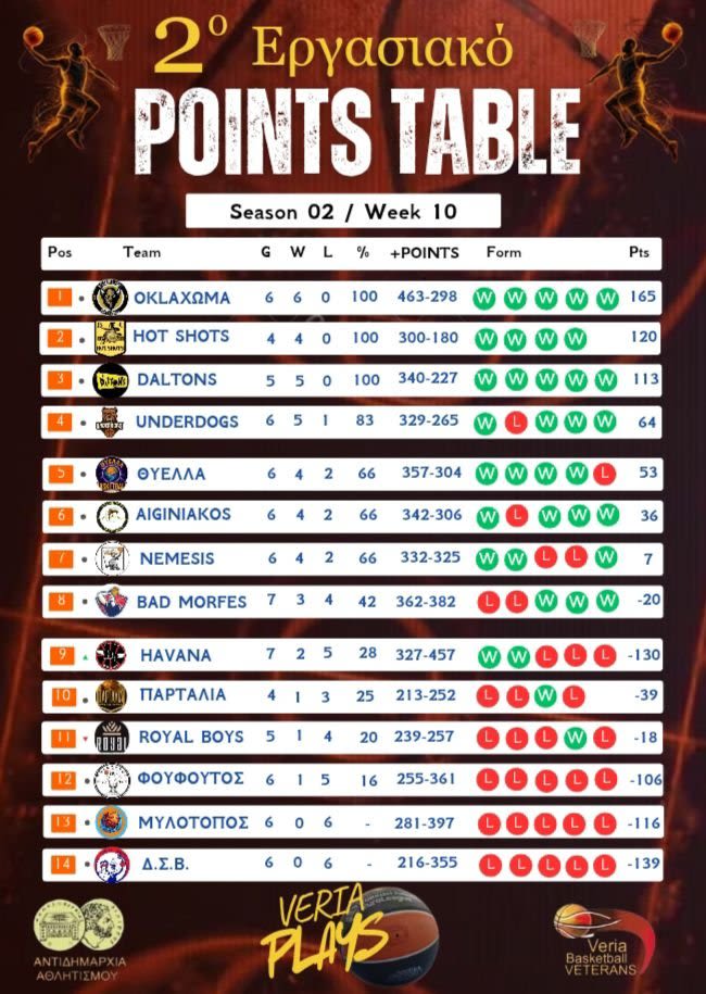 UNDERDOGS (ΣΙΣΤΑΚΟΣ): ΖΩΪΝΑΣ 15, ΠΟΥΛΙΟΒΑΛΗΣ 4, ΜΑΣΚΑΣ 15(1), ΛΙΑΚΟΣ 13, ΜΟΥΣΕΝΑΣ