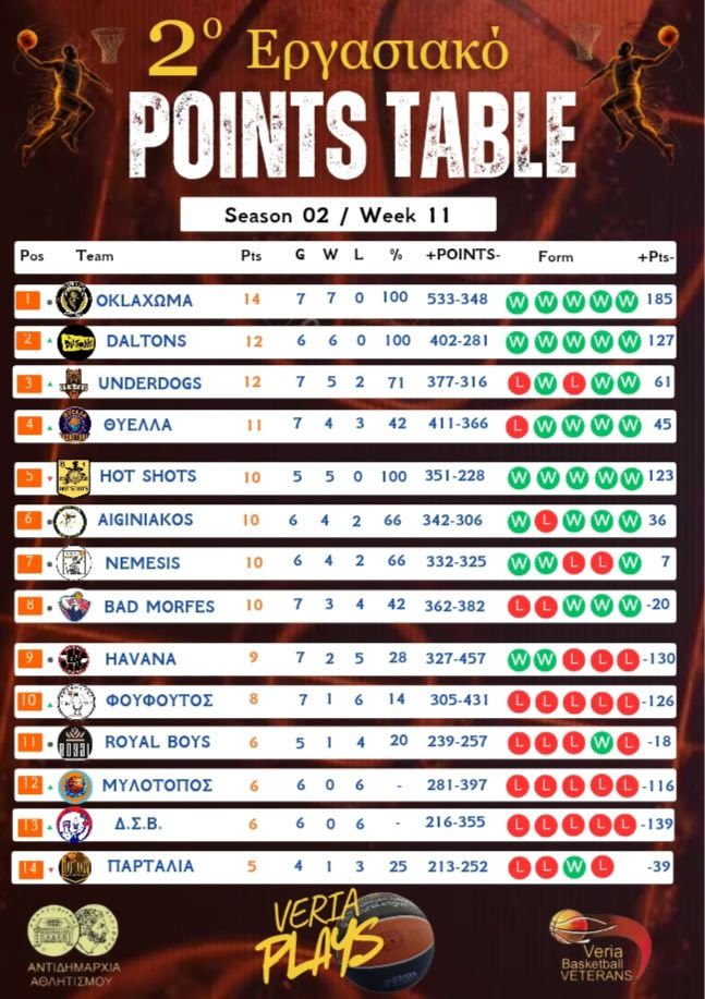 Με το παιχνίδι DALTONS vs ΘΥΕΛΛΑ έκλεισε η 11η αγωνιστική του
