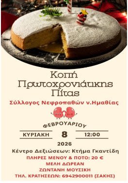 βασιλόπιτας στον ετήσιο χορό του θα πραγματοποιήσει ο Σύλλογος Νεφροπαθών