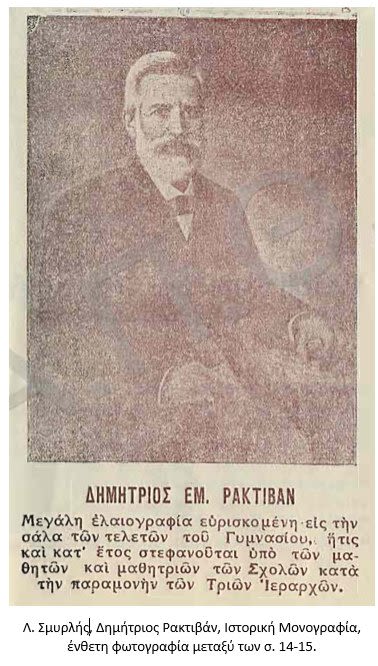 «Ὁ Δημ. Ρακτιβὰν ὑπῆρξε μέγας εὐεργέτης τῶν σχολείων μας.