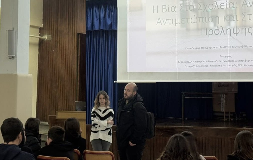 Το 3ο Γυμνάσιο Νάουσας επισκέφθηκε η νέα Επιστημονική Ομάδα του Έρασμου, με επικεφαλής την Κοινωνική Λειτουργό Αποστολία Δεμερτζή και την Ψυχολόγο της δομής Κατερίνα Μπρούβαλη, το πρωί της Δευτέρας 9 Φεβρουαρίου 2026, στο πλαίσιο του Εκπαιδευτικού Προγράμματος, με τίτλο: “Μορφές βίας και εκφοβισμών στη μαθητική κοινότητα”.