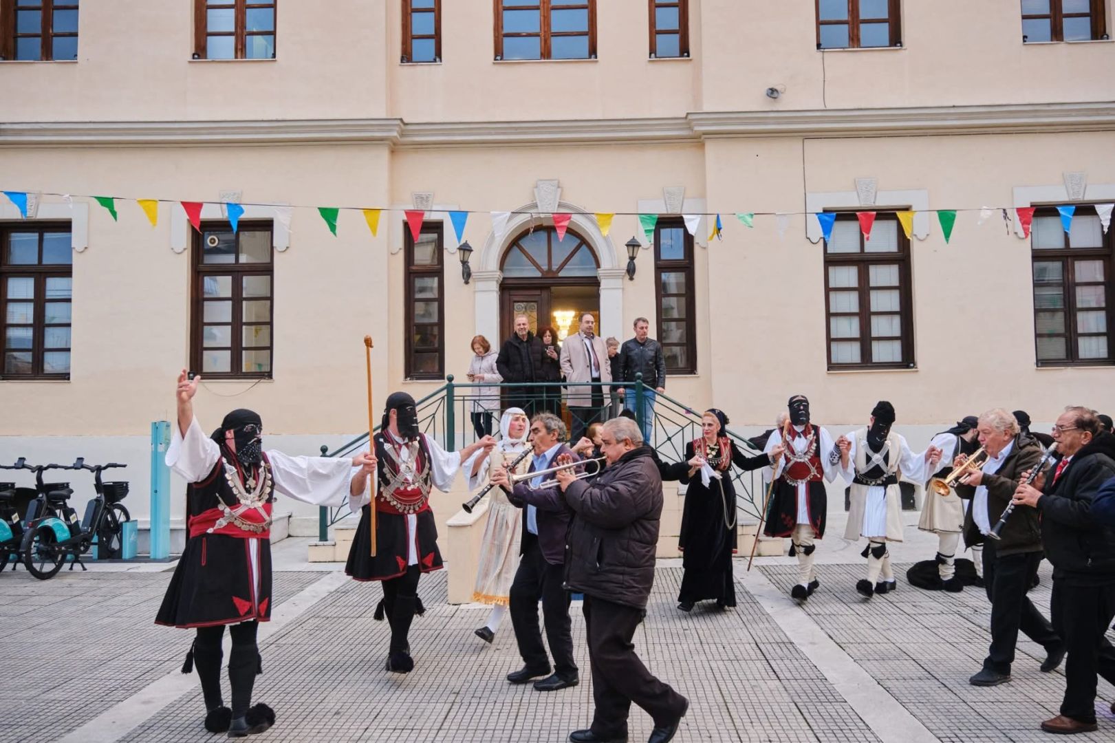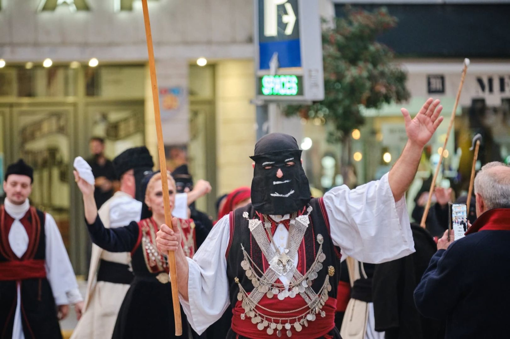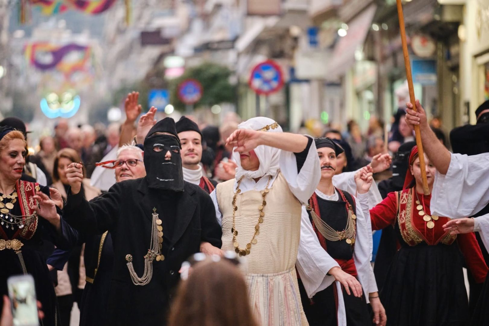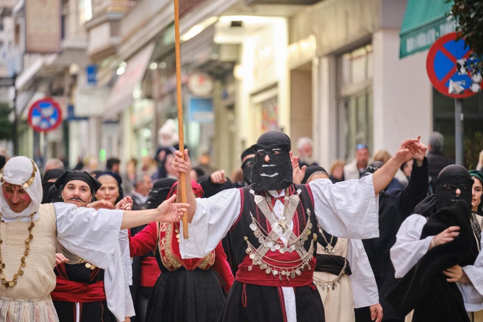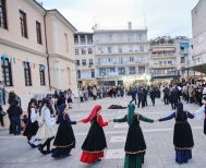 Οι Καπεταναίοι, οι Μάγκες και η Βοσκοπούλα, που μαζί με τις χορεύτριες και τους χορευτές του Συλλόγου σχημάτισαν ένα χορευτικό σύνολο όπου συνδυάζονταν αρμονικά όλες οι ηλικίες, ξεκίνησαν χορεύοντας από το σπίτι του Συλλόγου και έφτασαν στο Δημαρχείο της πόλης όπου ζήτησαν και πήραν την άδεια από τον Δήμαρχο να συνεχίσουν τους χορούς μέσα στην πόλη.