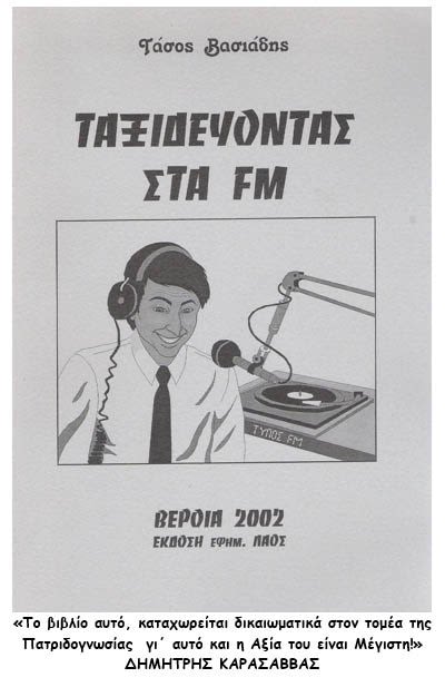 Επιλεγμένες εκπομπές του κύκλου «ΤΑΞΙΔΕΥΟΝΤΑΣ ΣΤΟΝ ΤΟΠΟ ΚΑΙ ΣΤΟΝ ΧΡΟΝΟ», απομαγνητοφωνήθηκαν και συμπεριλήφθηκαν στο βιβλίο «ΤΑΞΙΔΕΥΟΝΤΑΣ ΣΤΑ FM», που εκδόθηκε από την εφημερίδα «ΛΑΟΣ»