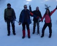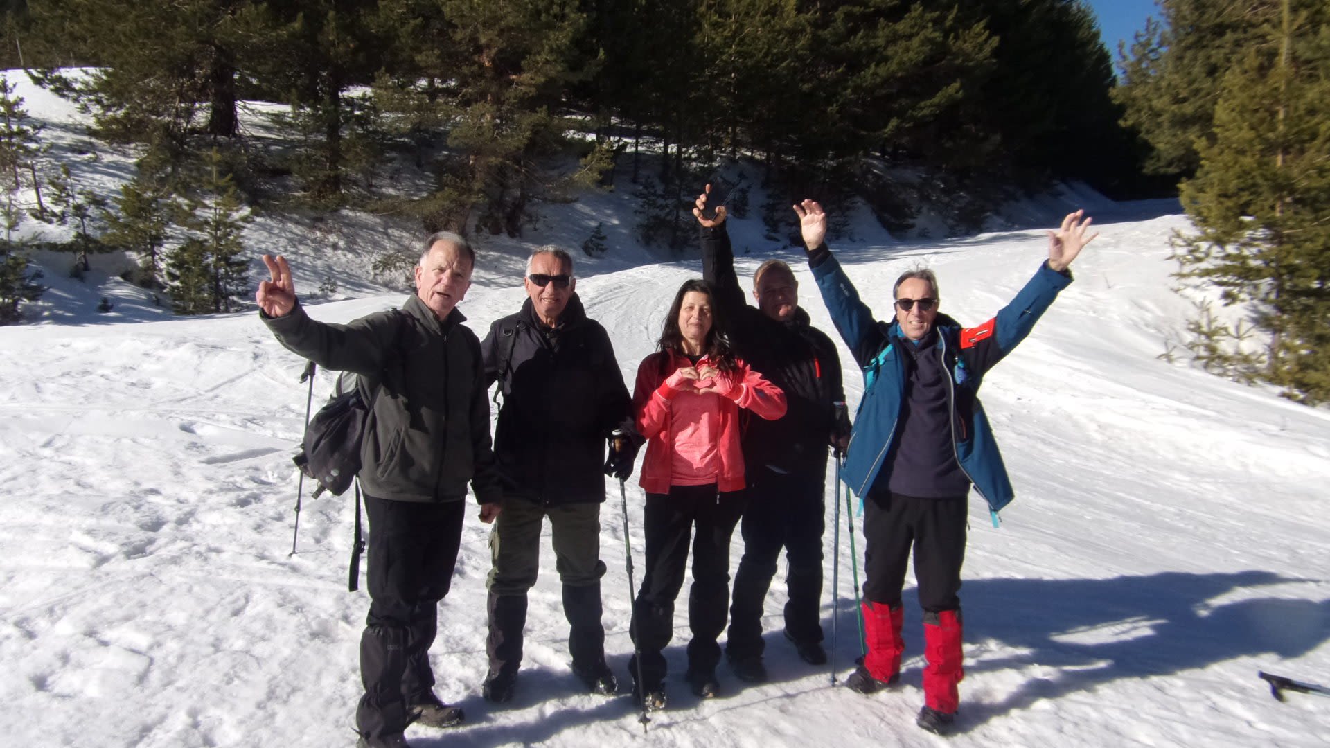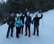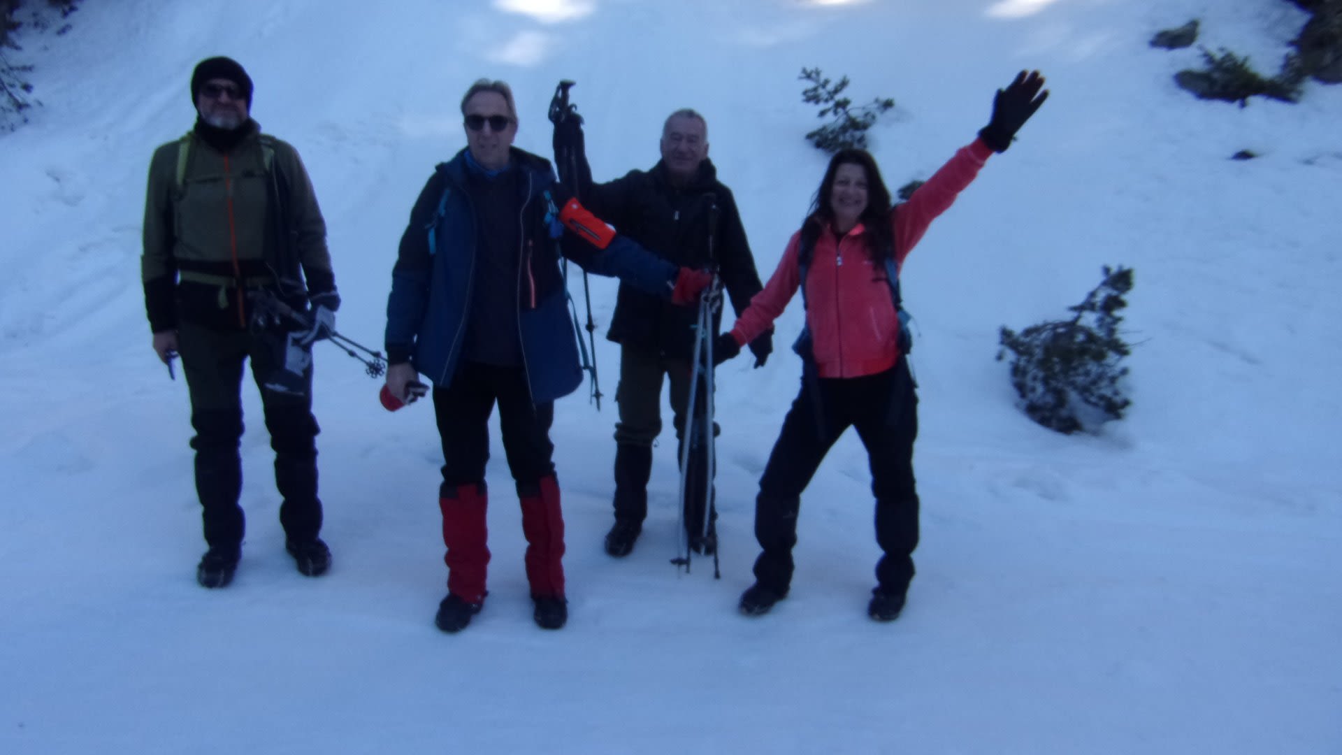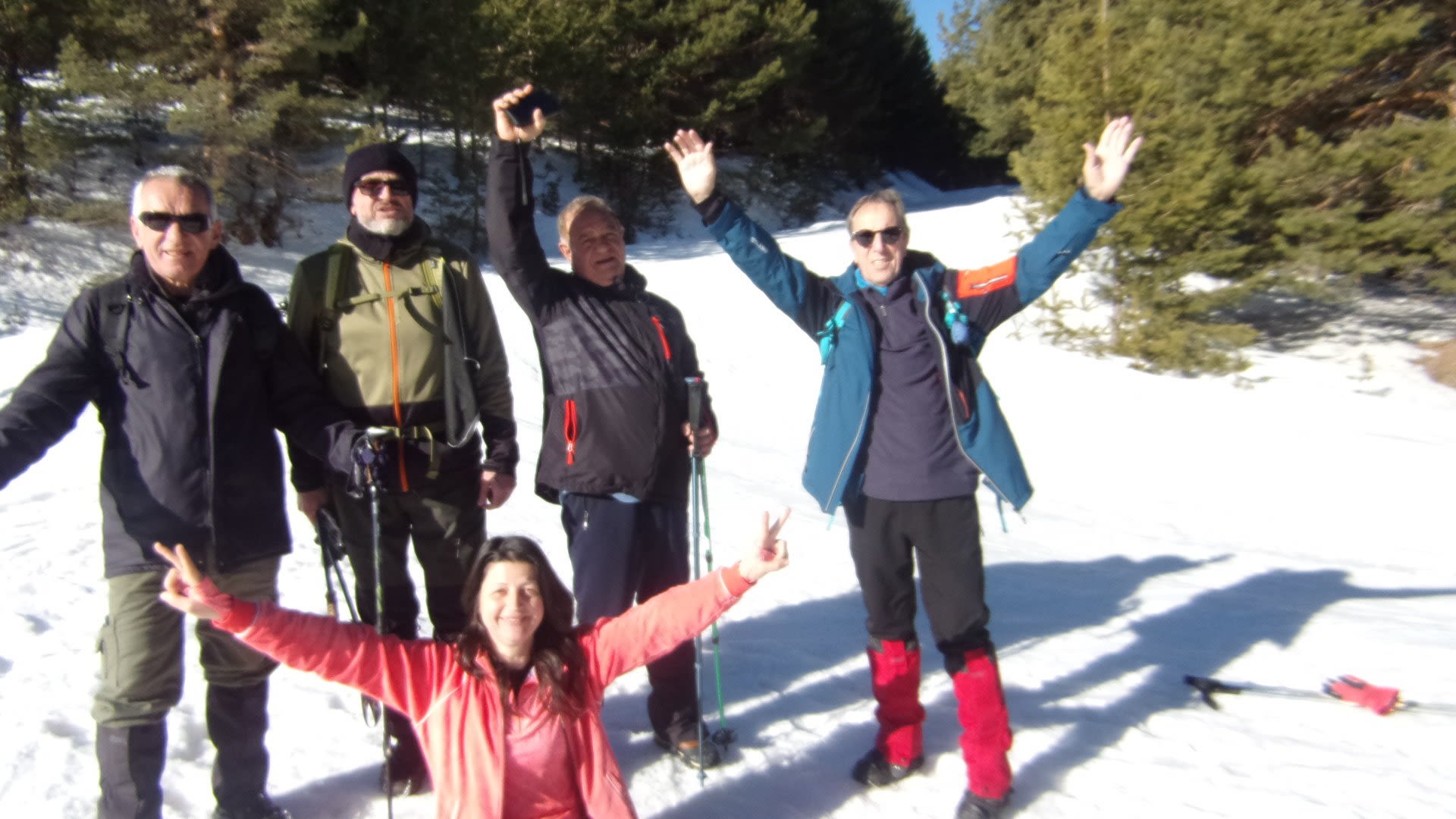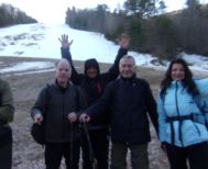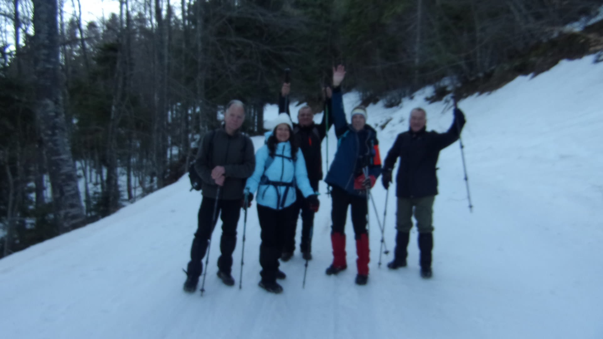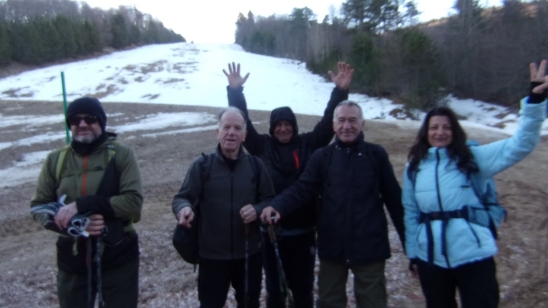 ορειβάτες στο δασικό δρόμο που περιτριγυρίζει και αγκαλιάζει τις πίστες του χιονοδρομικού.
