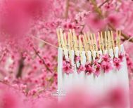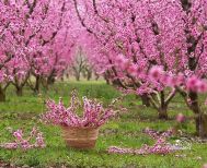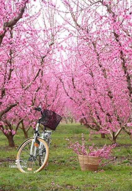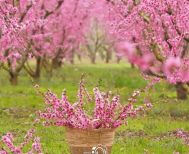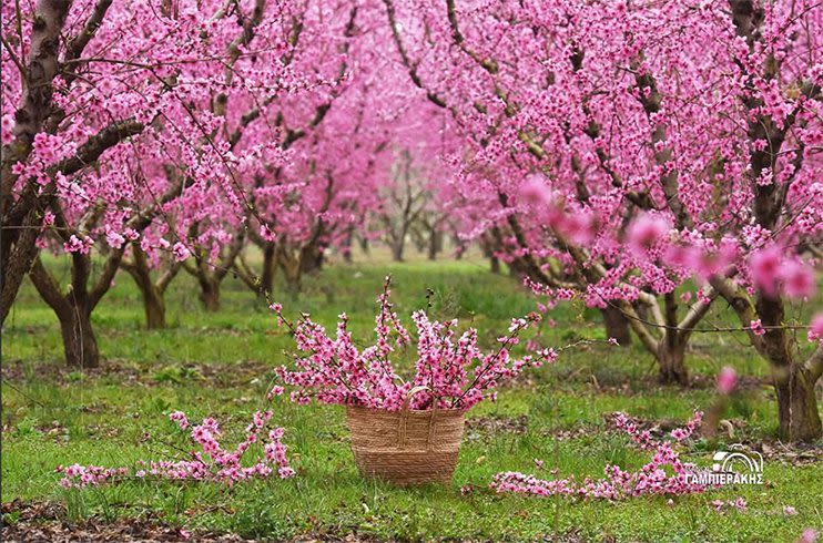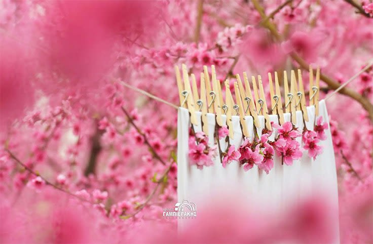 χρησιμοποιώντας ως φυσικό σκηνικό τις ανθισμένες ροδακινιές.